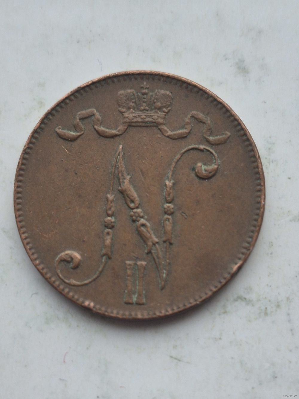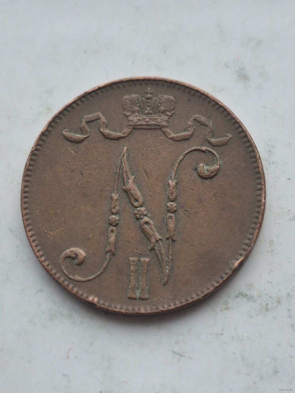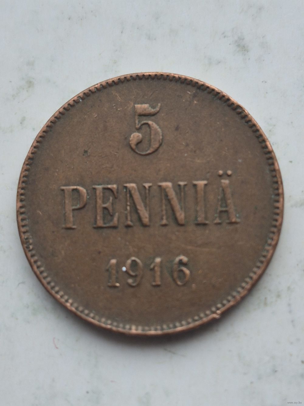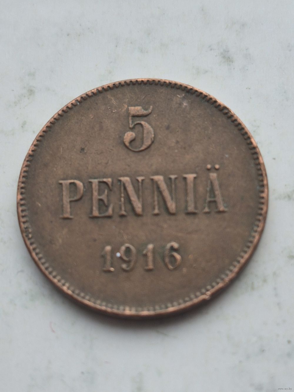 5 пенни 1916 года для Финляндии (Николай II). Монета не чищена. 45302