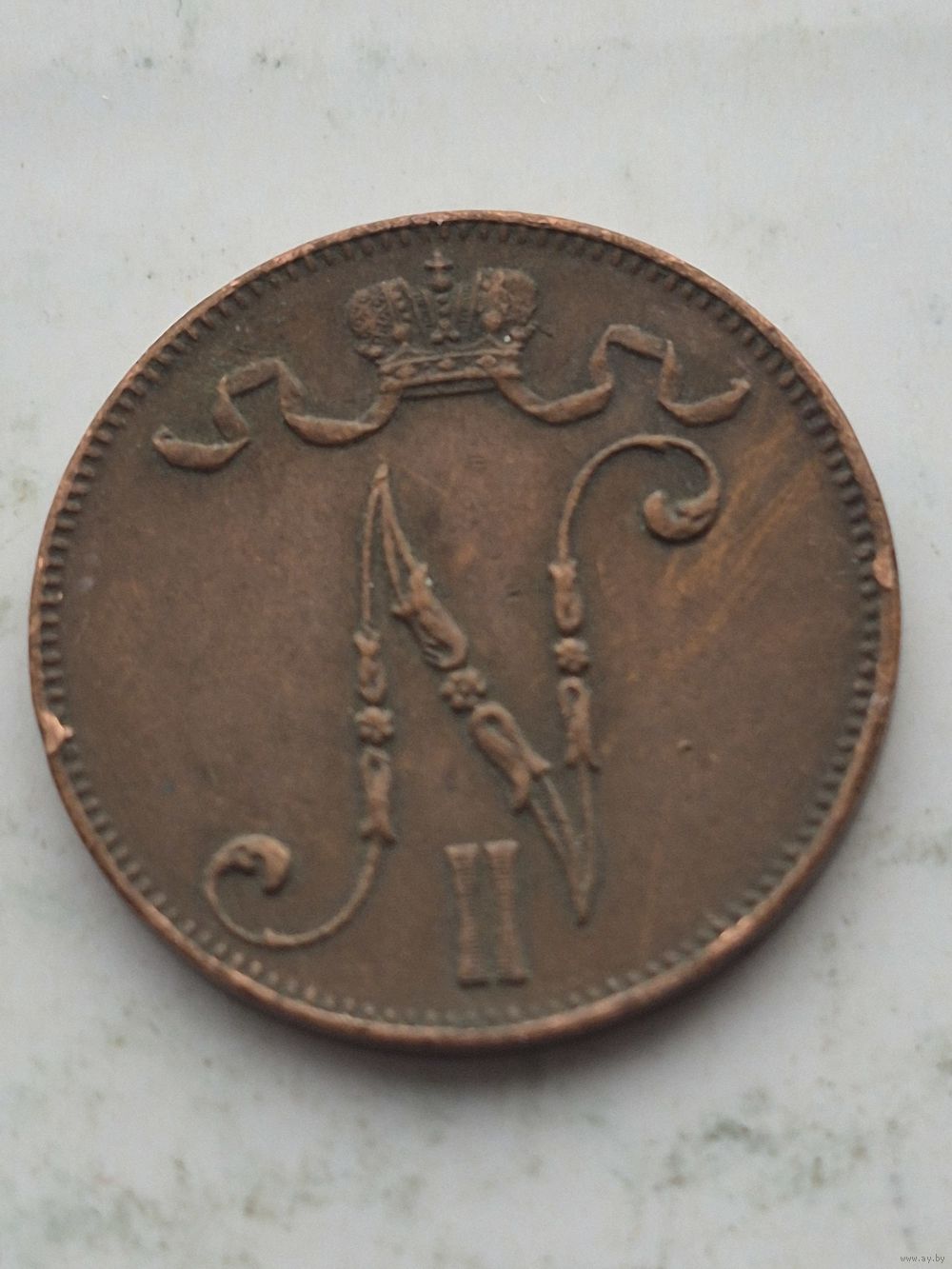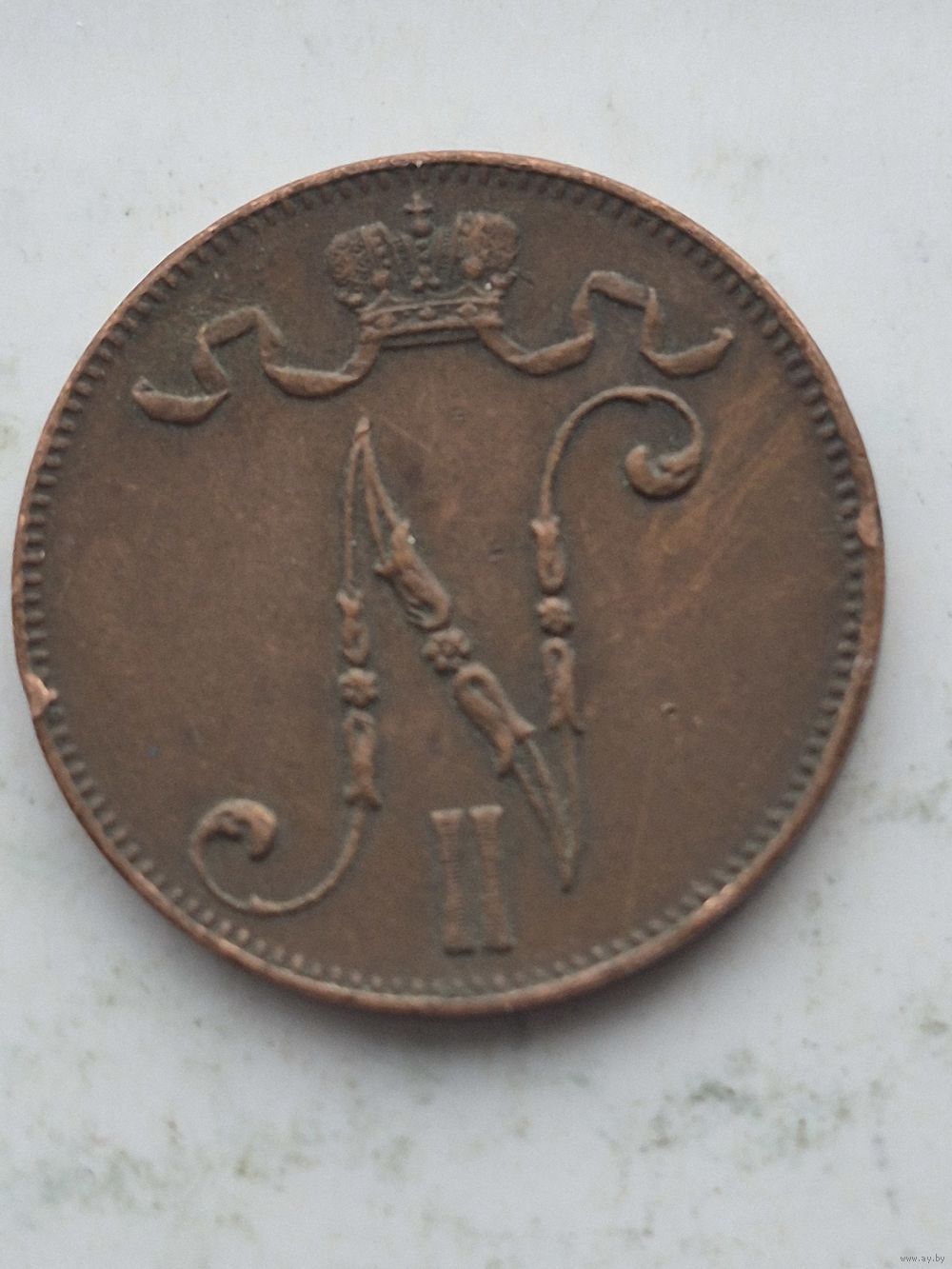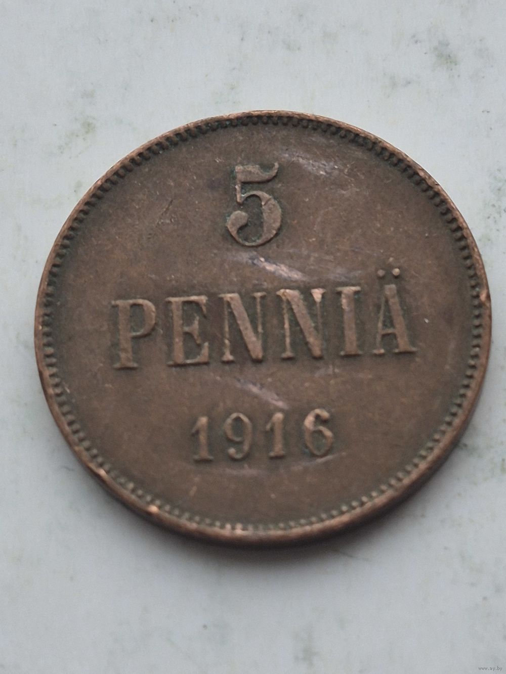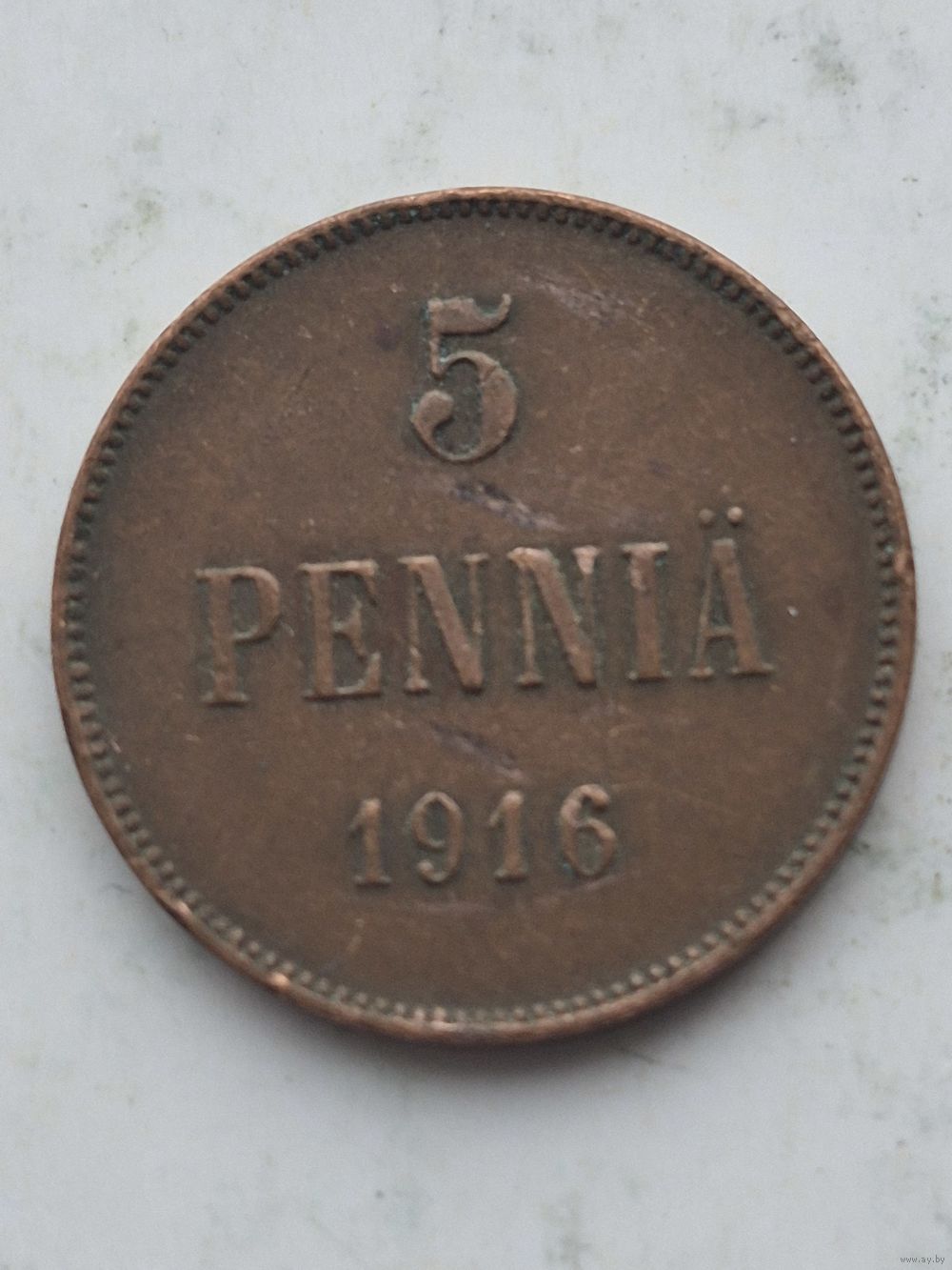 5 пенни 1916 года для Финляндии (Николай II). Монета не чищена. 45304
