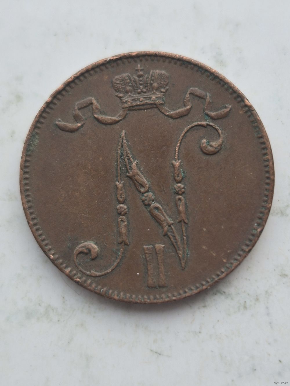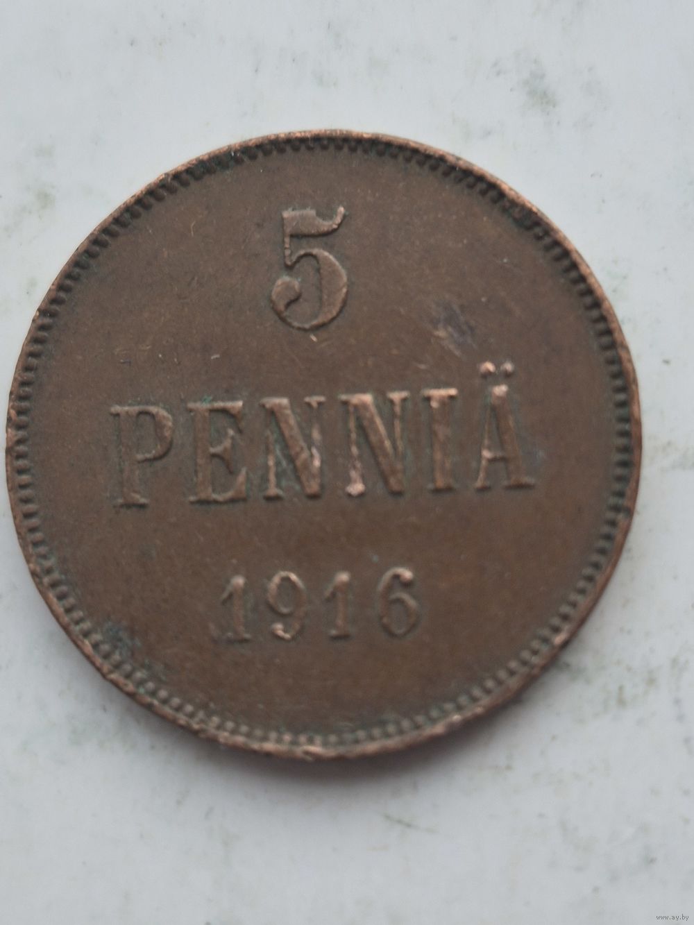 5 пенни 1916 года для Финляндии (Николай II). Монета не чищена. 45306
