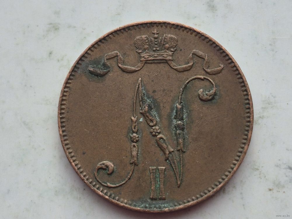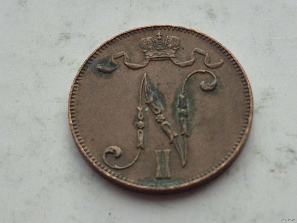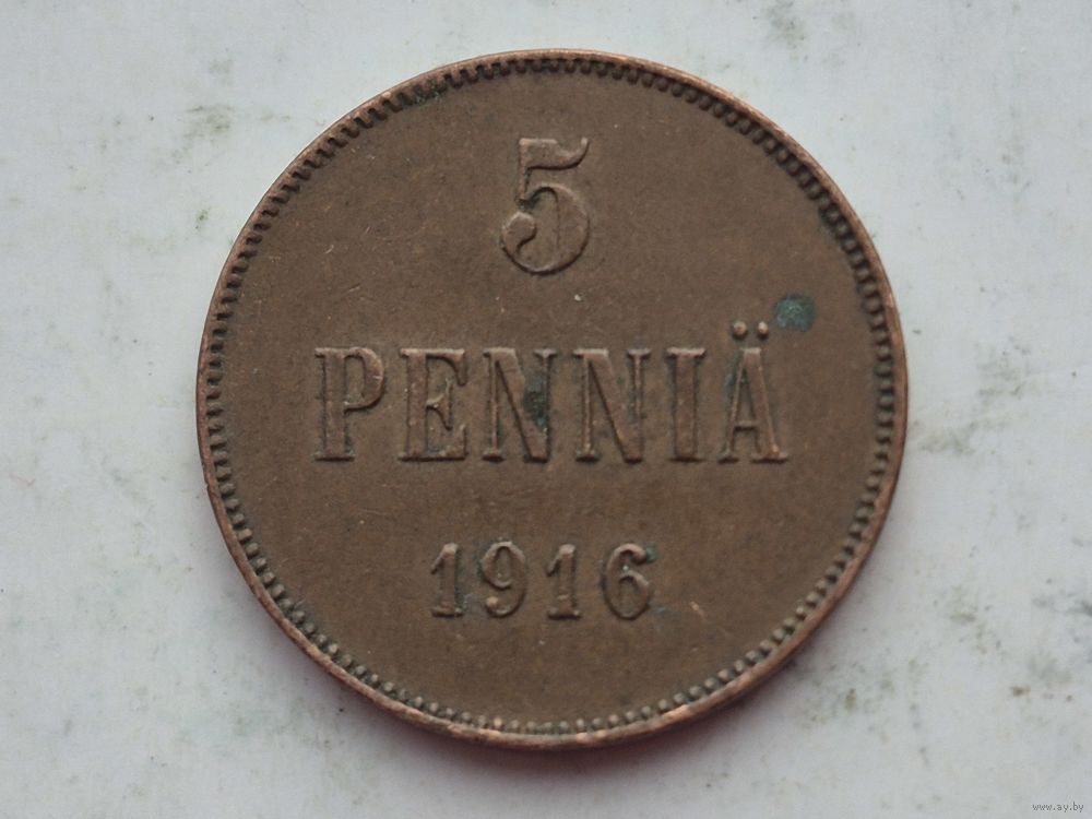 5 пенни 1916 года для Финляндии (Николай II). Монета не чищена. 45311