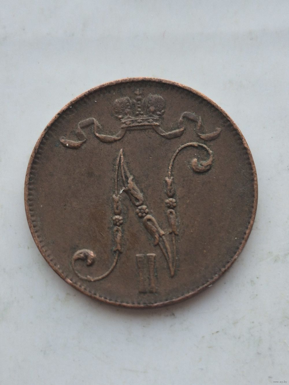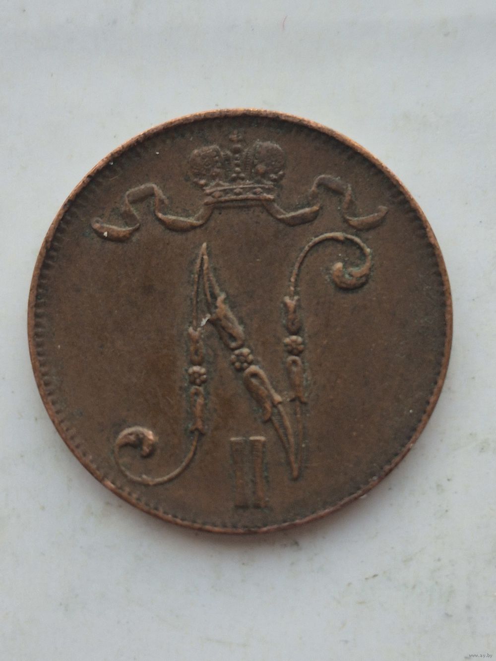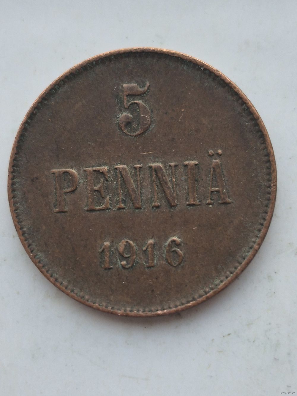 5 пенни 1916 года для Финляндии (Николай II). Монета не чищена. 45340
