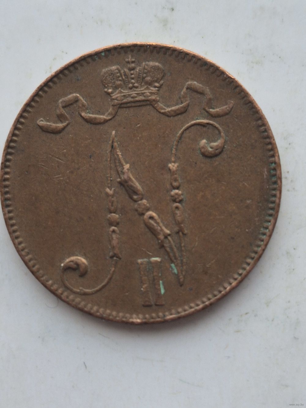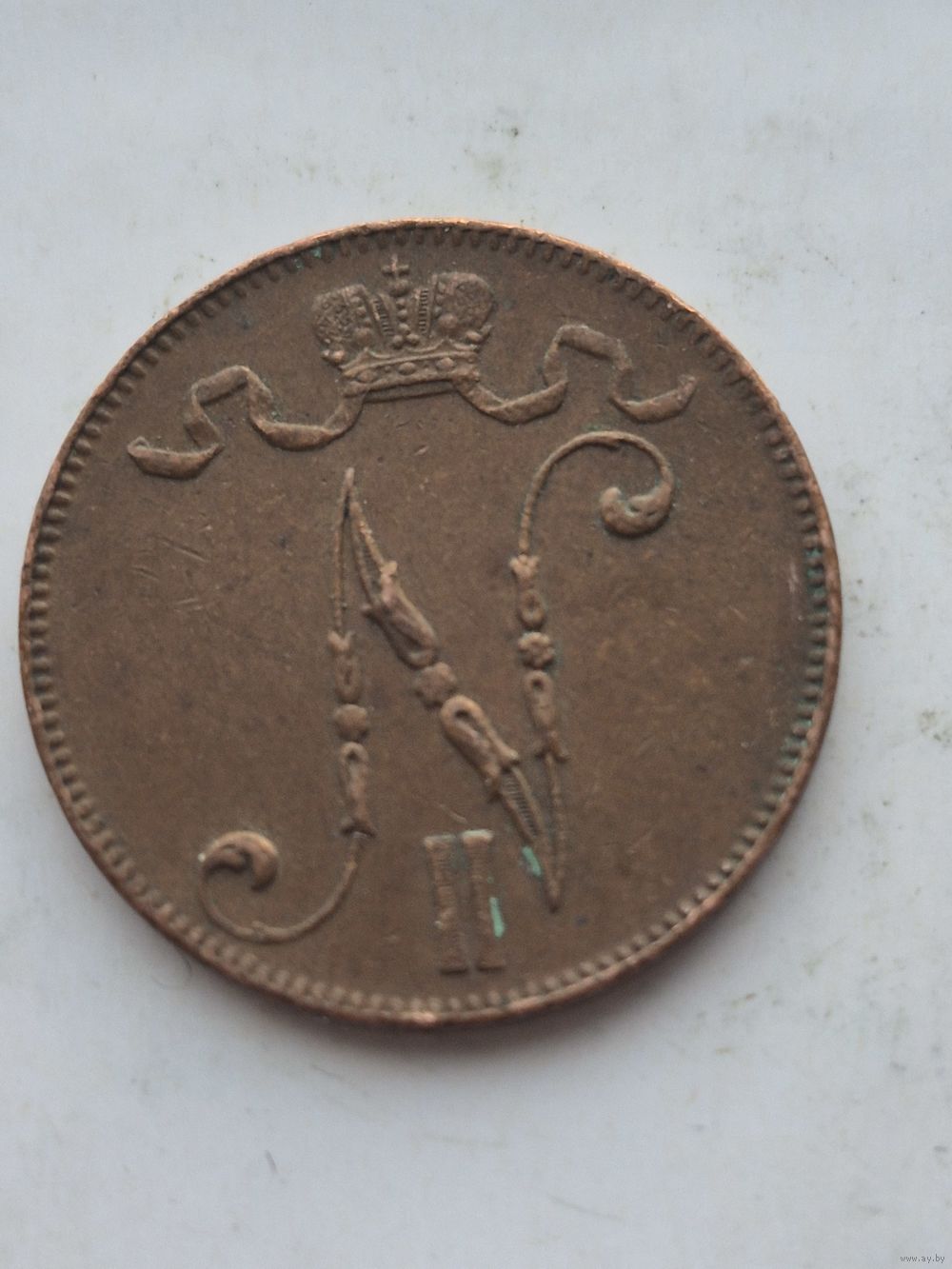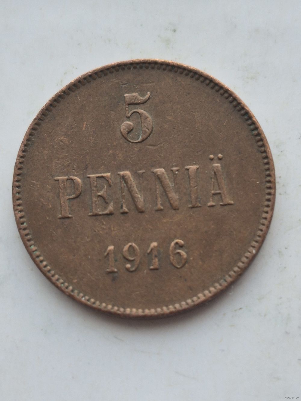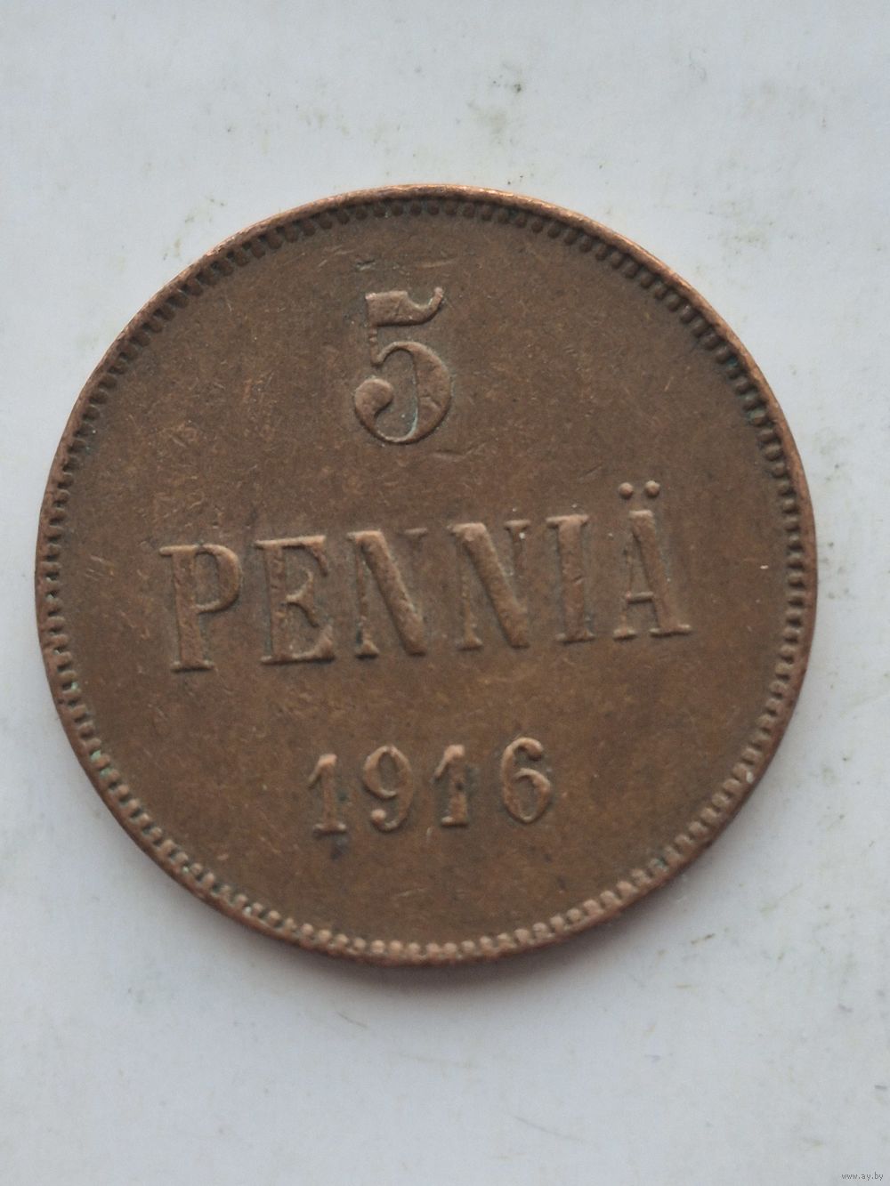 5 пенни 1916 года для Финляндии (Николай II). Монета не чищена. 45341
