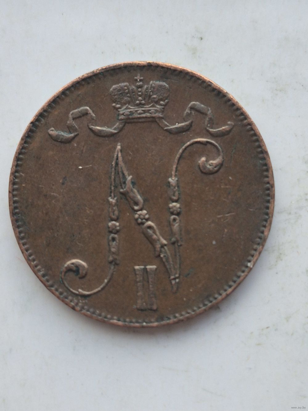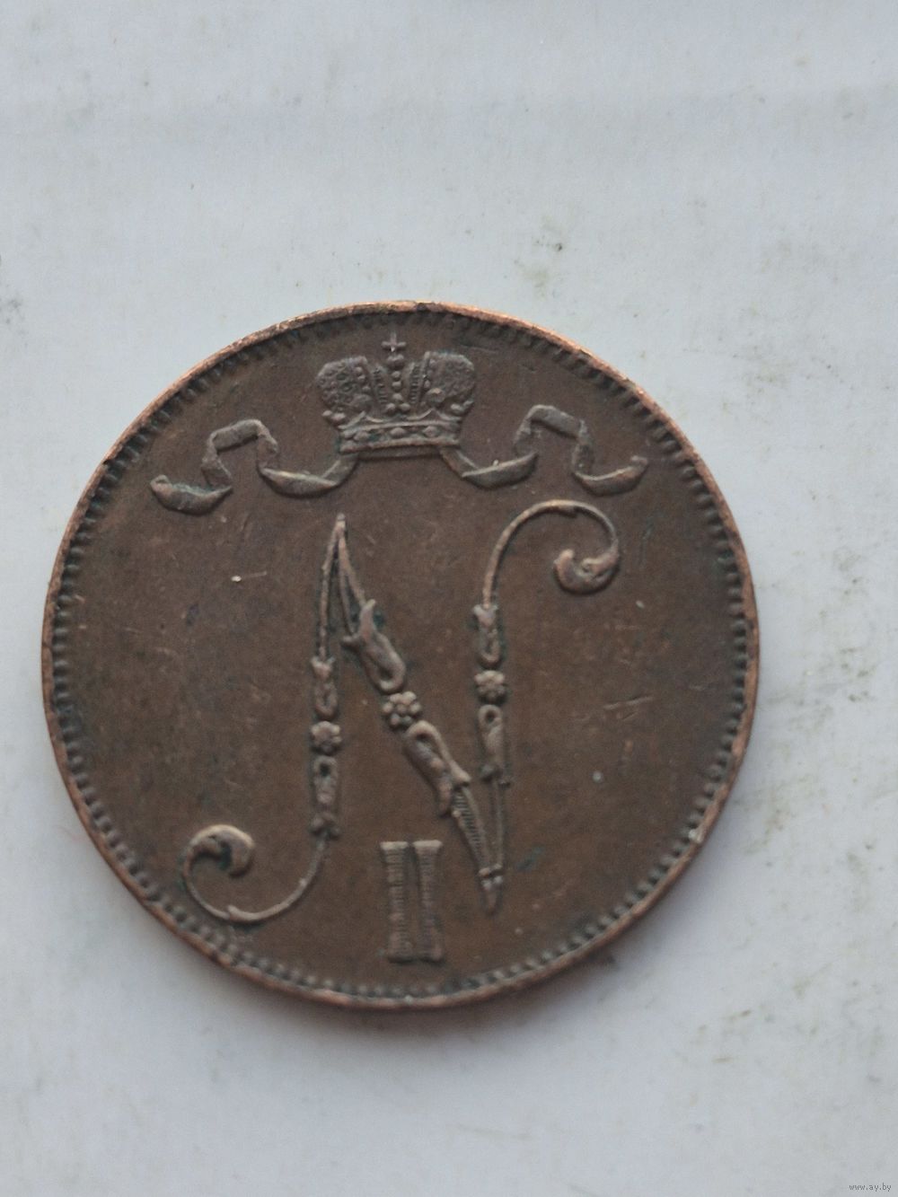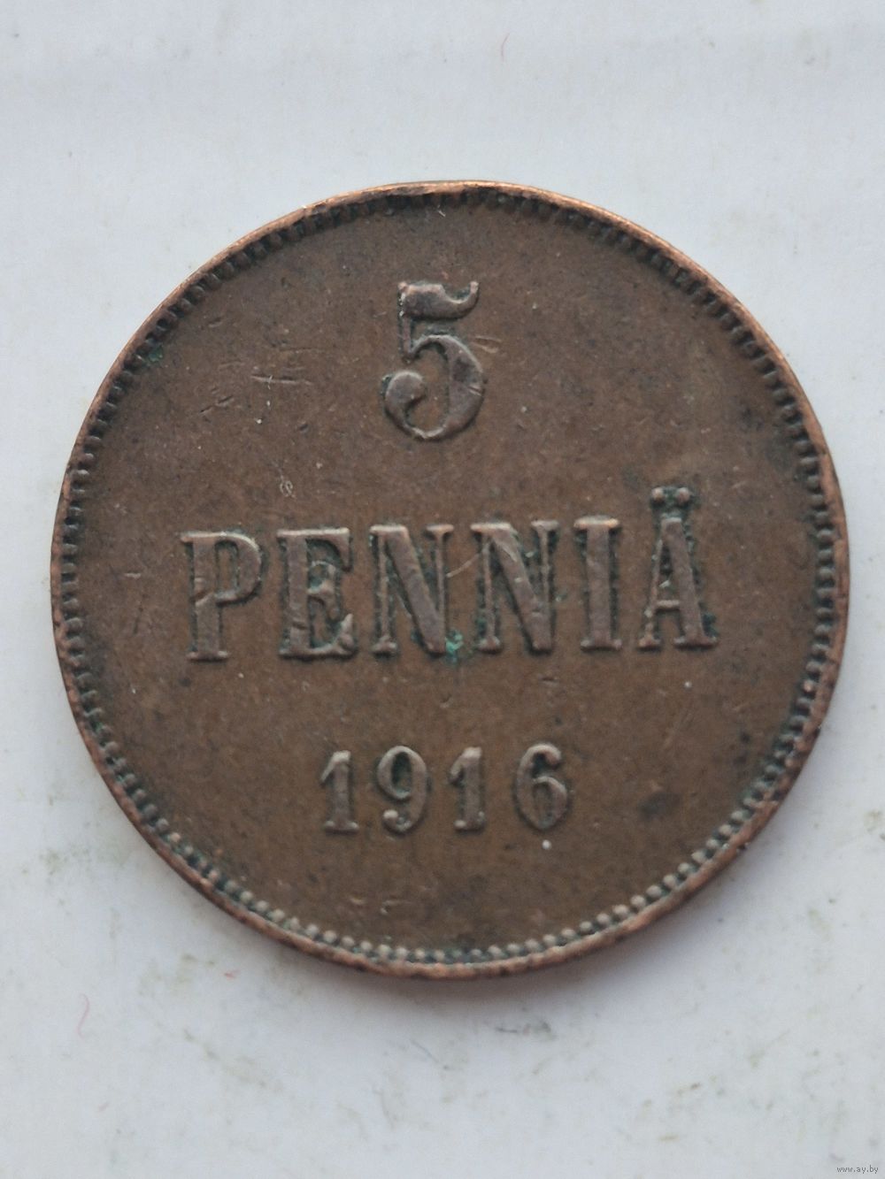 5 пенни 1916 года для Финляндии (Николай II). Монета не чищена. 45342