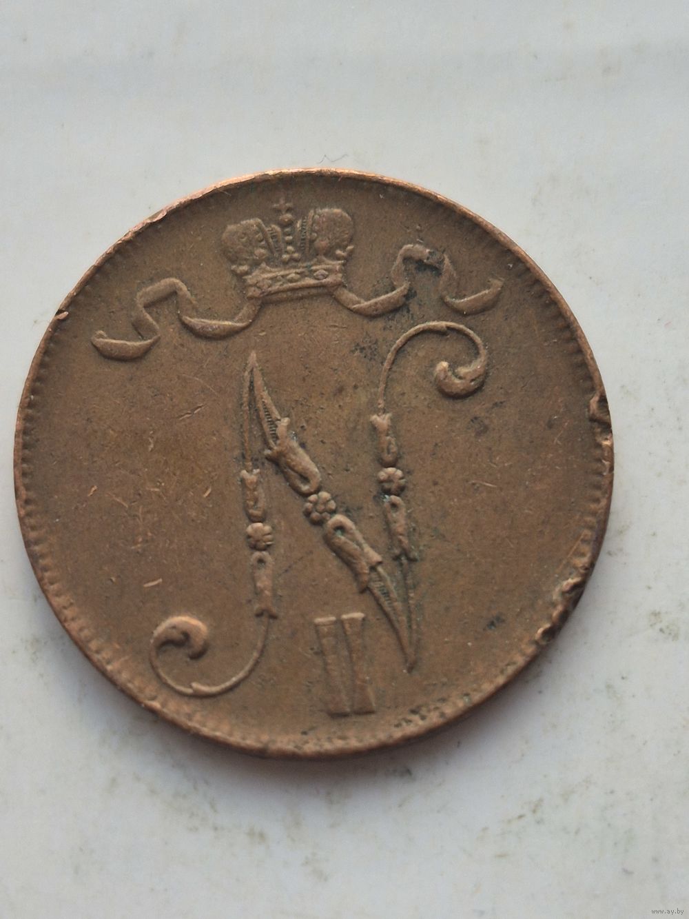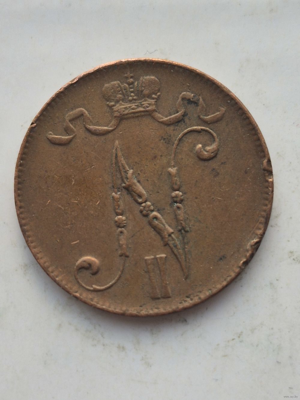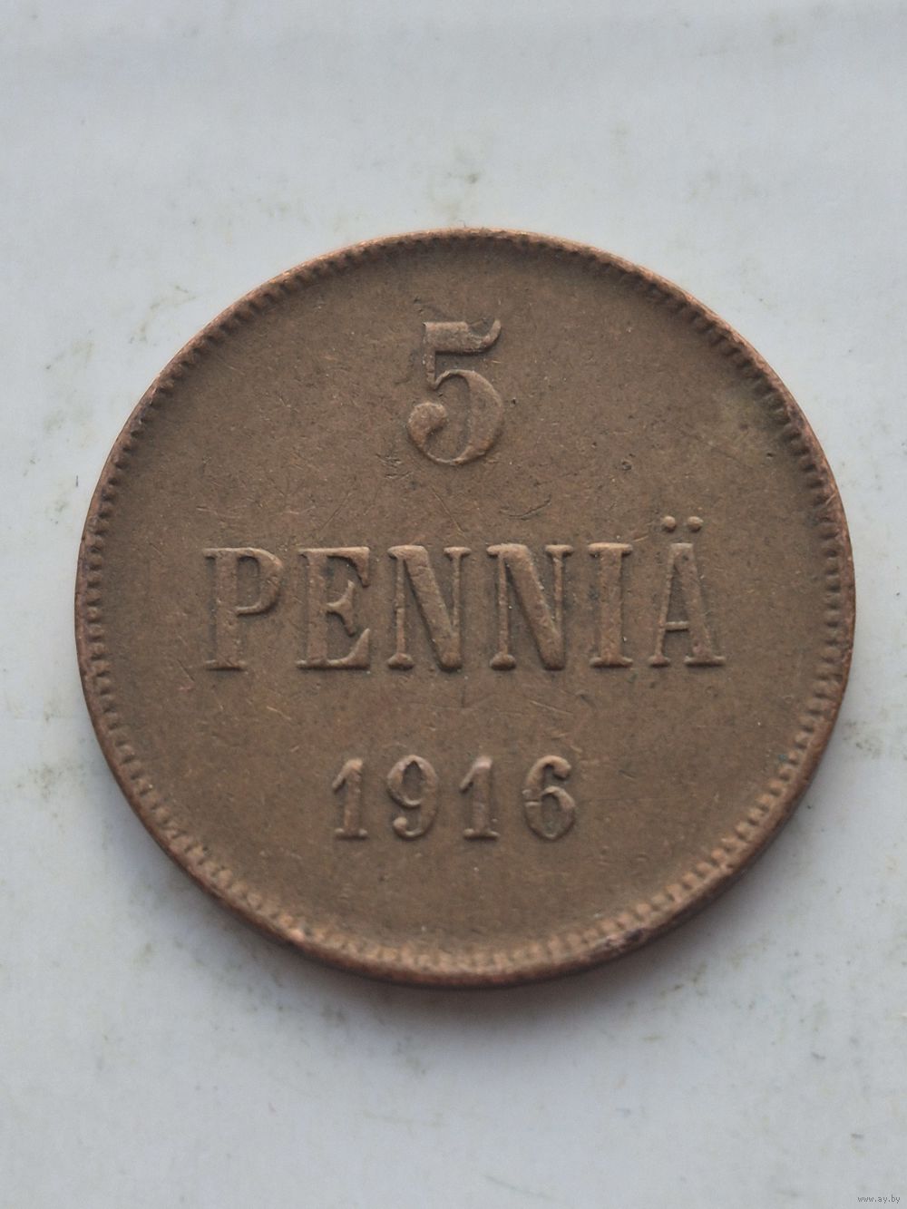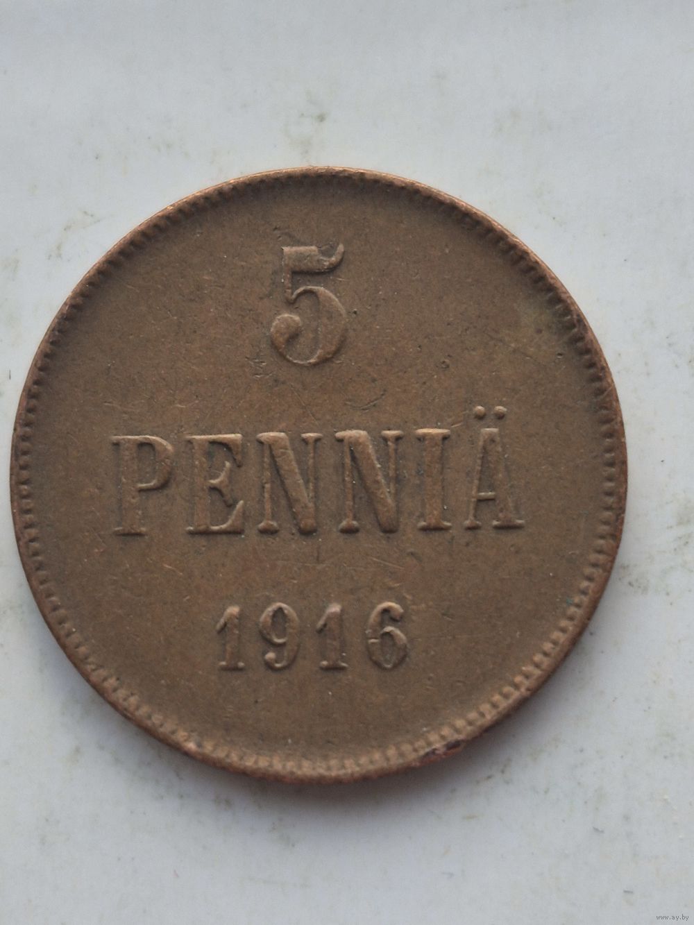 5 пенни 1916 года для Финляндии (Николай II). Монета не чищена. 45344