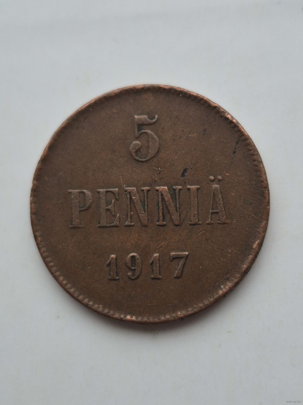 5 пенни 1917 года для Финляндии (Николай II). Монета не чищена. 45383
