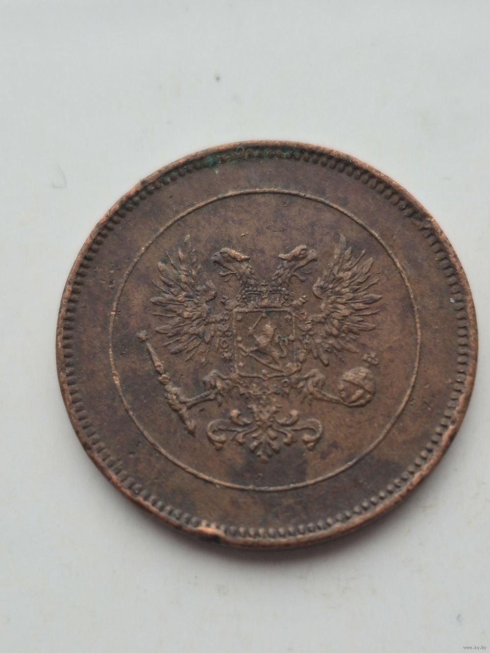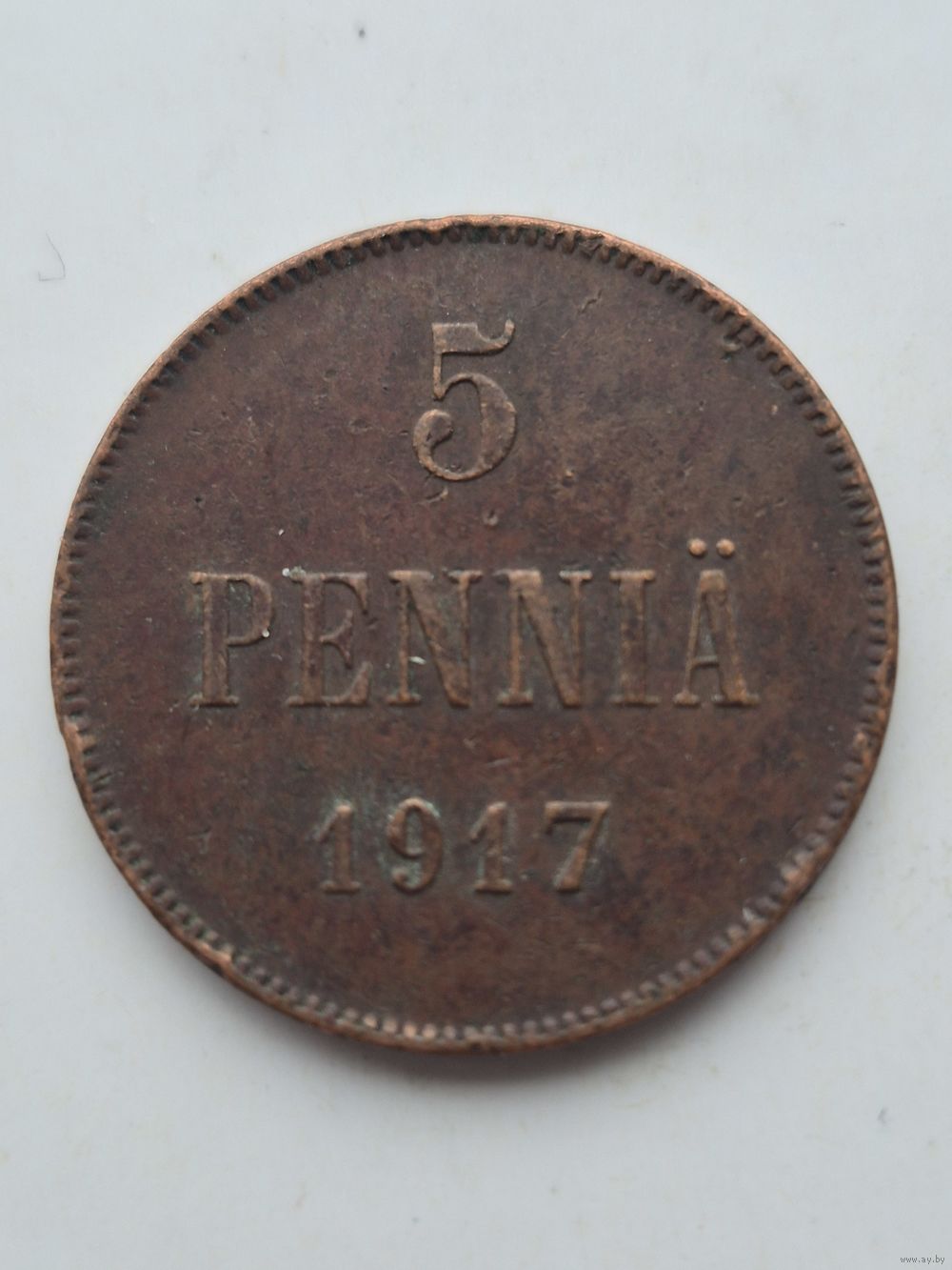 5 пенни 1917 года для Финляндии (Николай II). Монета не чищена. 45393