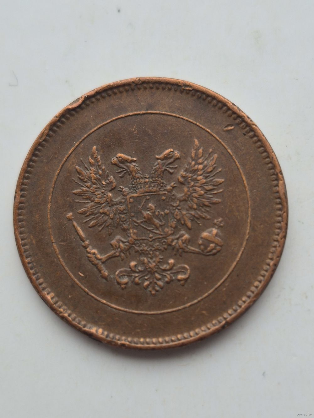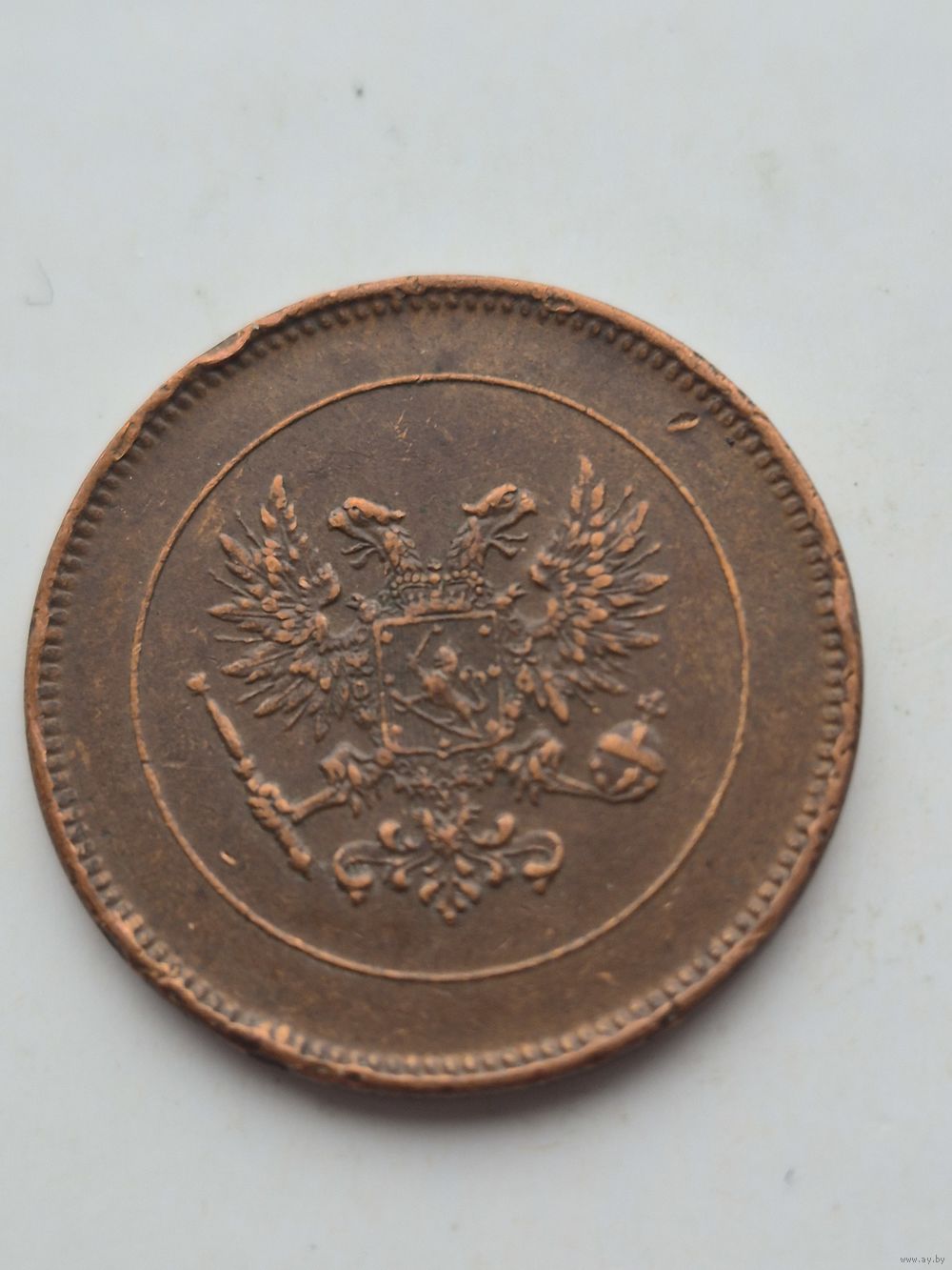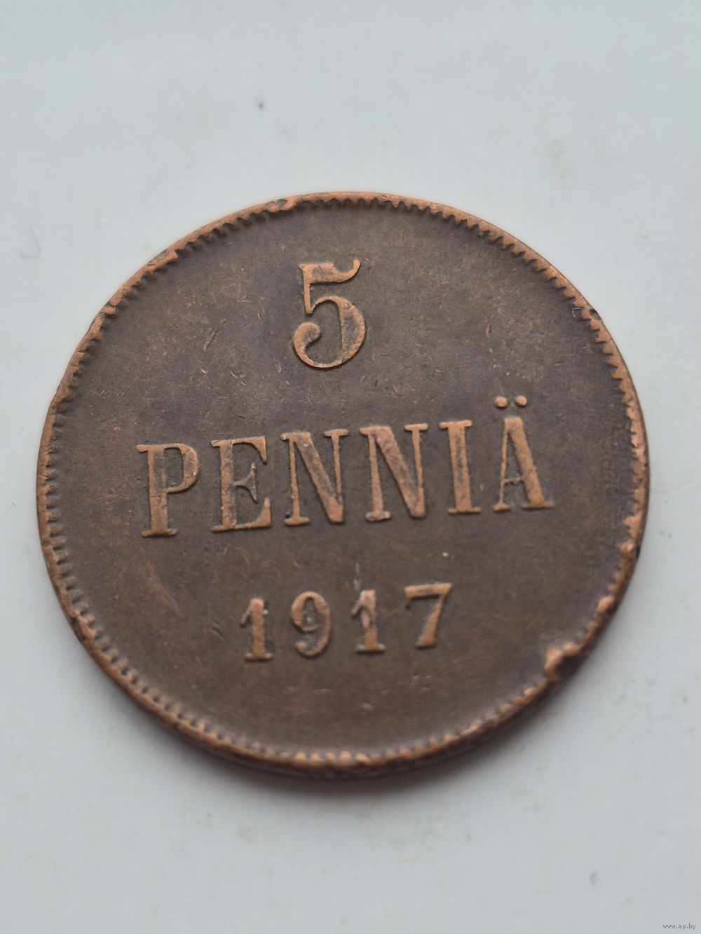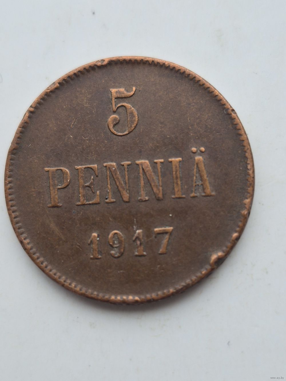 5 пенни 1917 года для Финляндии (Николай II). Монета не чищена. 45394