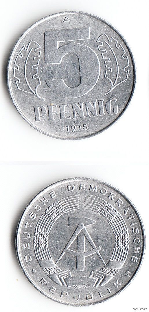 5 пфеннигов ГДР 1975 года