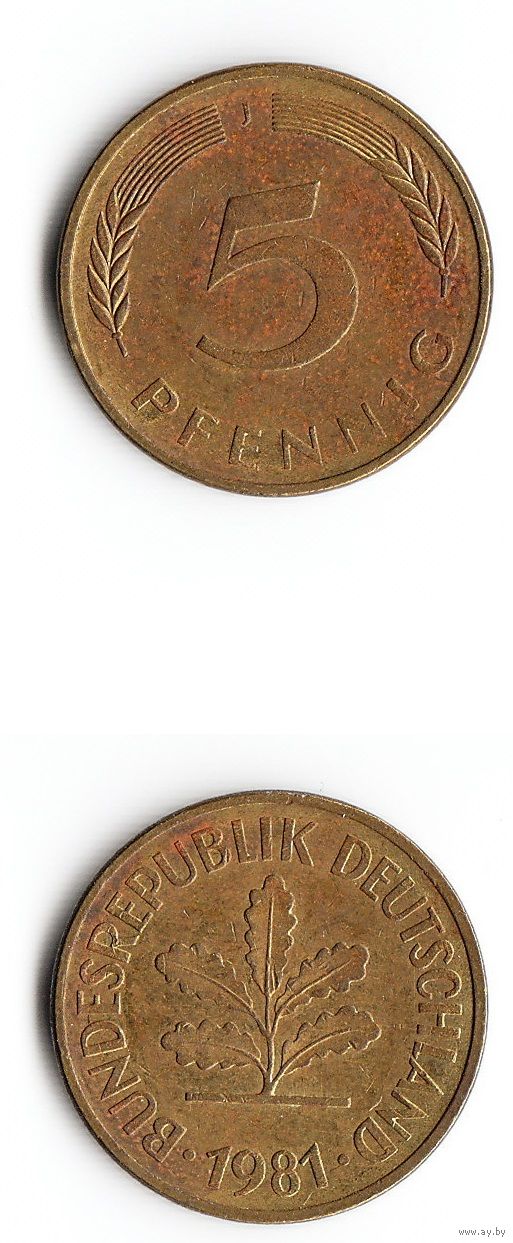 5 пфеннигов Германия 1981 года(J)