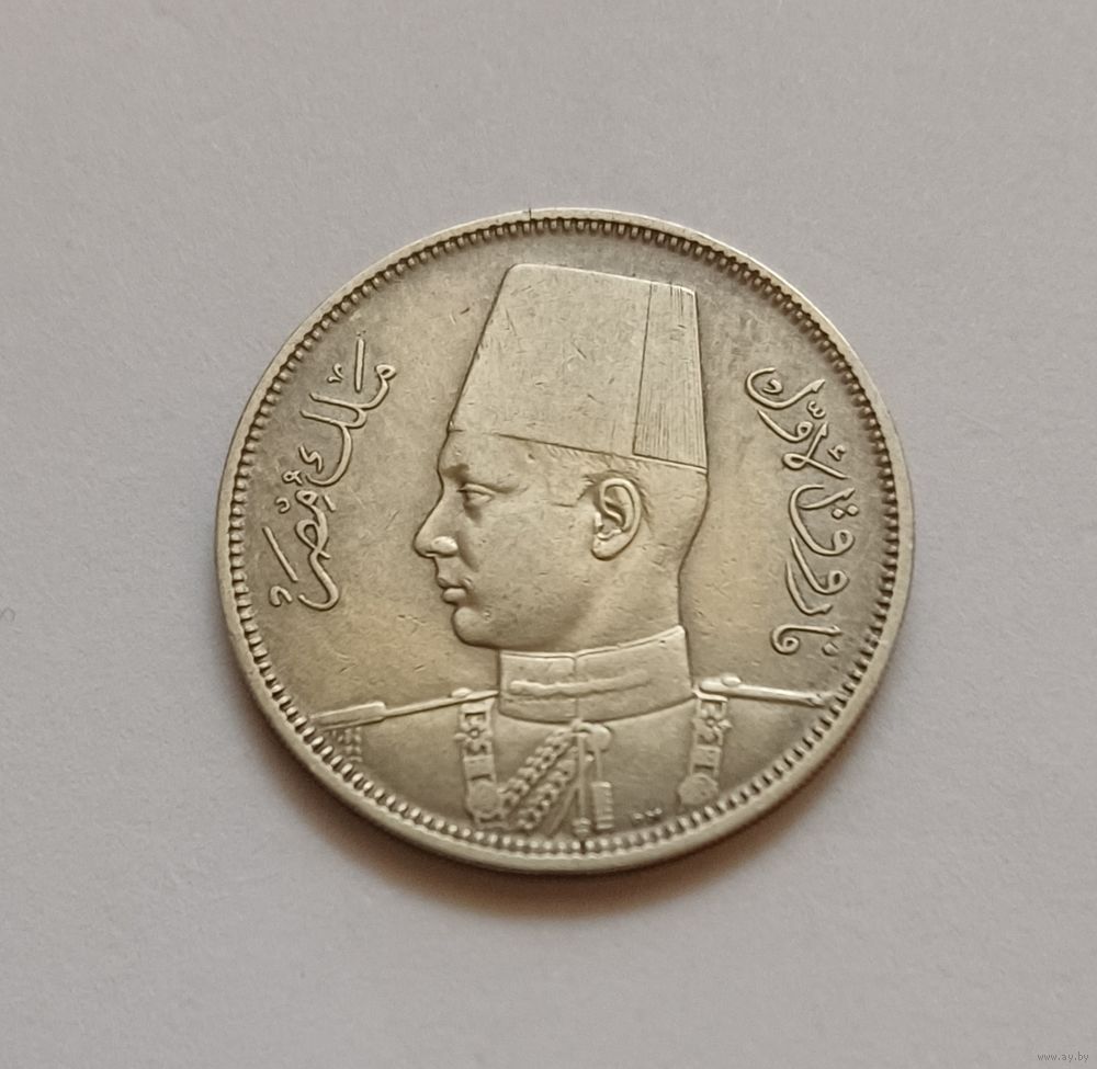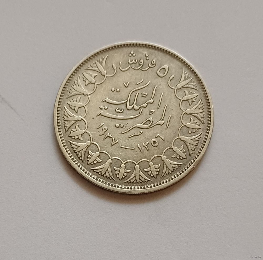 5 пиастров, 1937г. 835 пр., серебра.Фарук I. Египет.