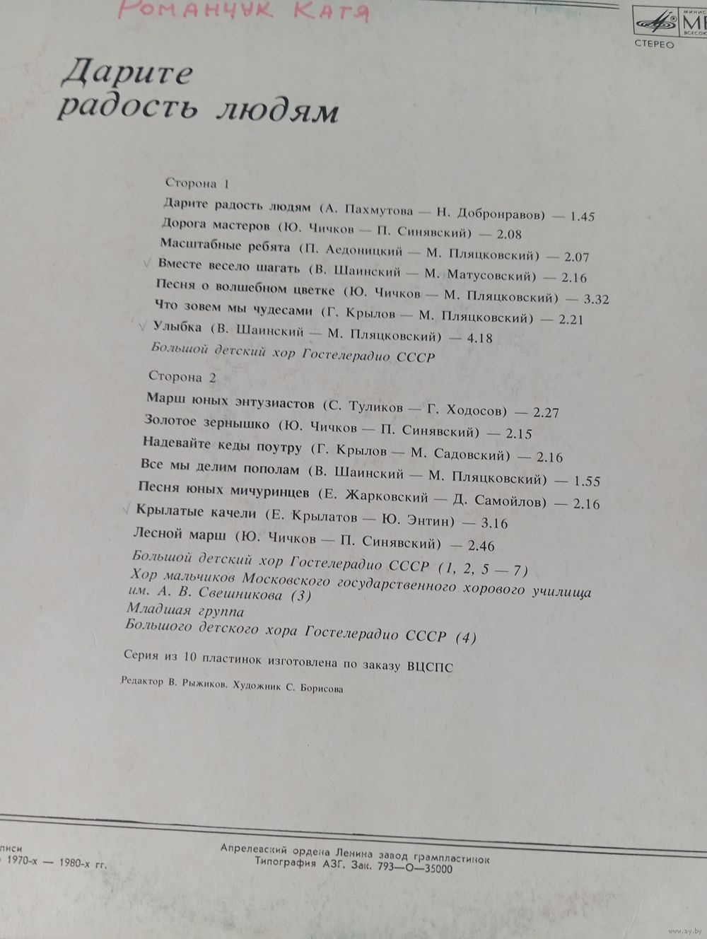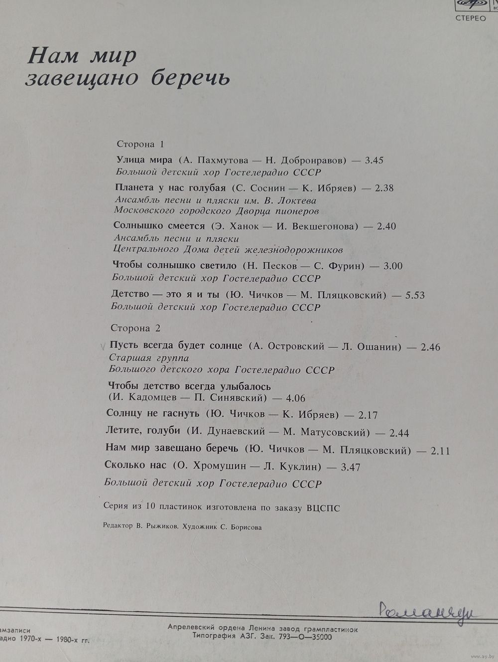 Все пластинки в внутренних конвертах