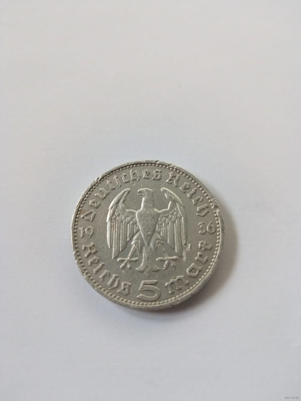 5 рейхсмарок 1936 года , Германия,третий рейх,буква J,серебро 900