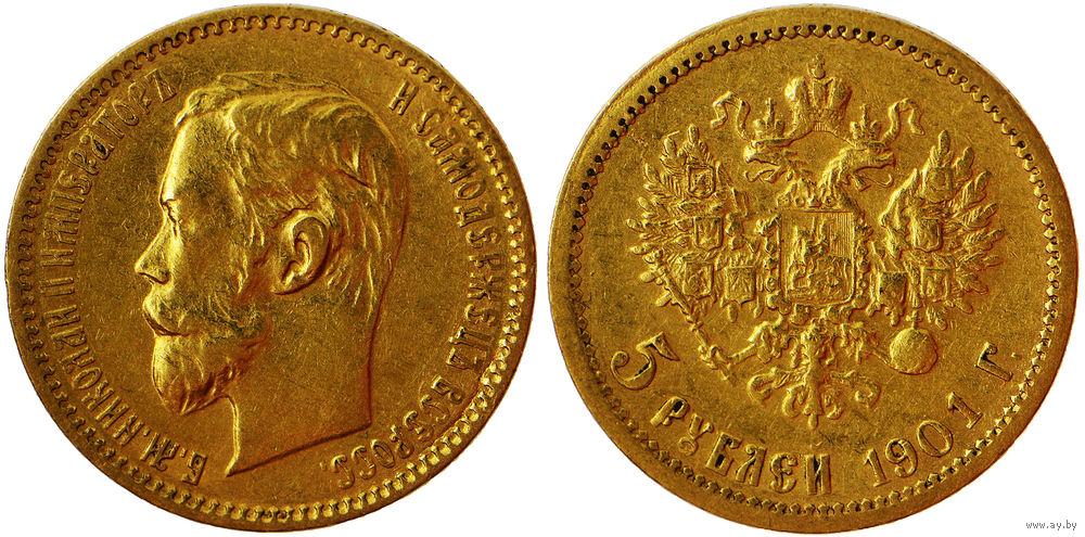 5 рублей 1901 года, ФЗ. Золото. Сохранность очень хорошая. Severin# 572. Уздеников# 0341. Биткин# 27. Казаков# 222.