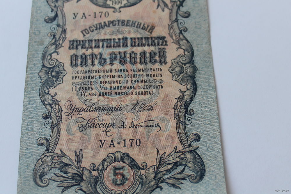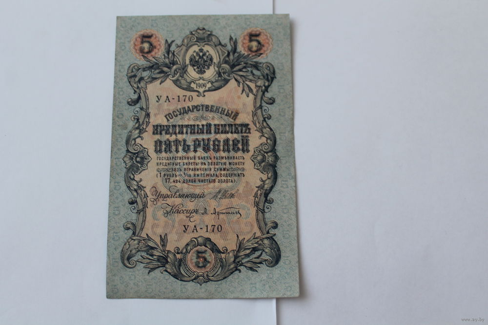 5 рублей 1909 г. Шипов - Афанасьев.Серия УА-170