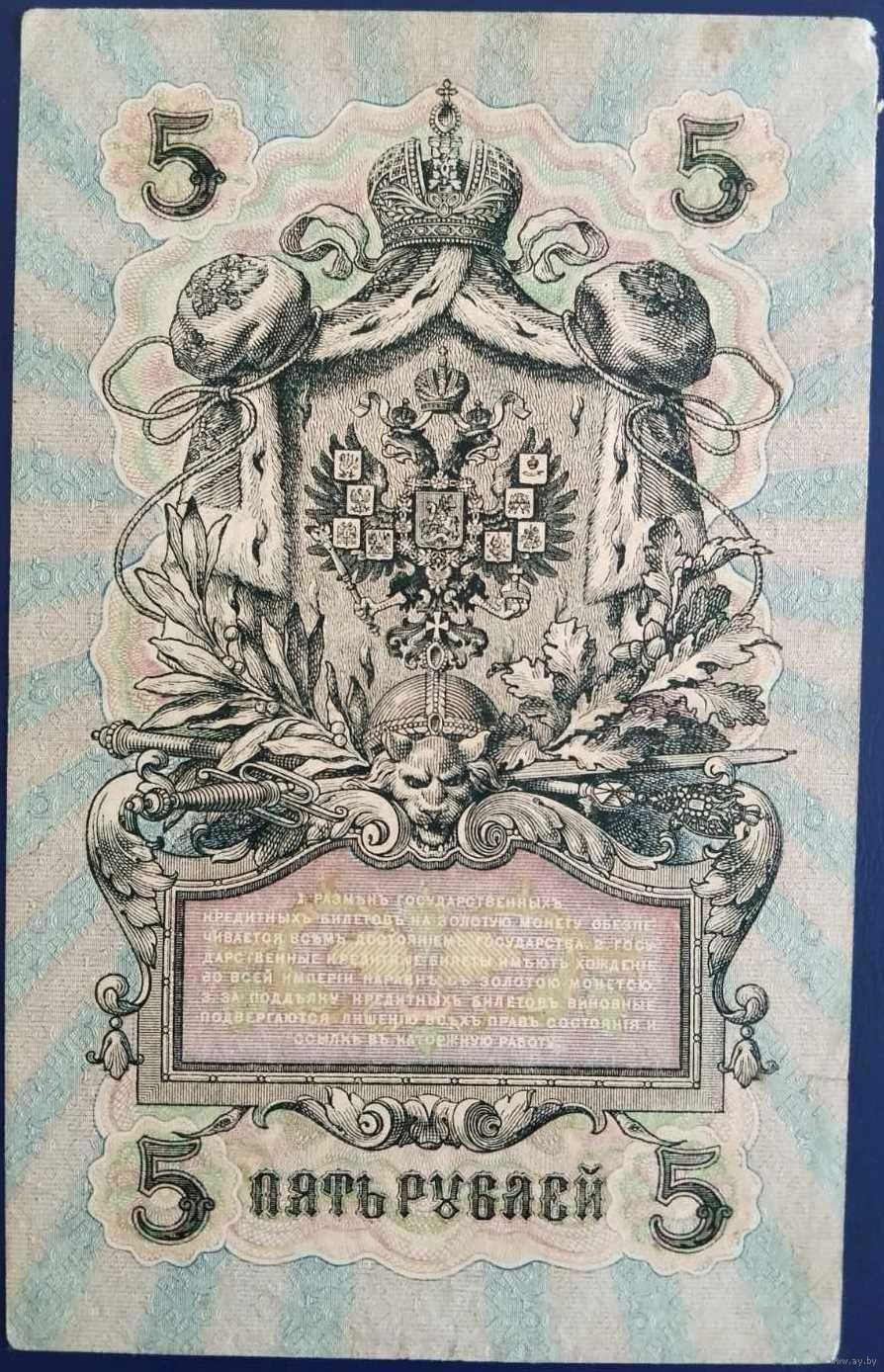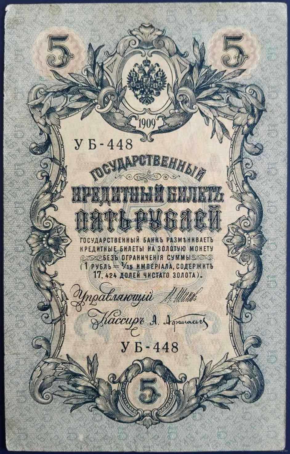 5 рублей 1909 г. Шипов-Афанасьев. УБ.