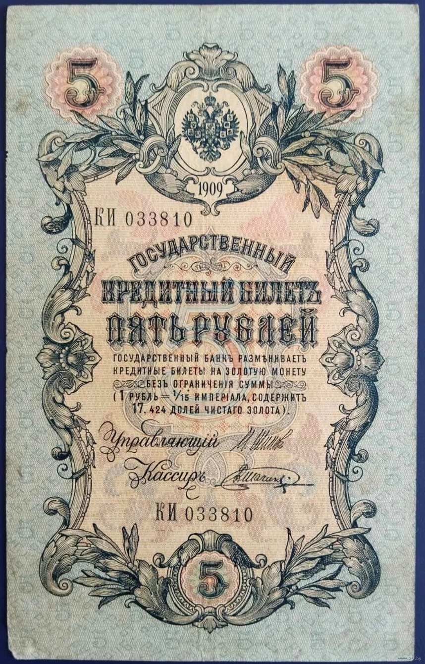 5 рублей 1909 г. Шипов-Шагин. КИ.