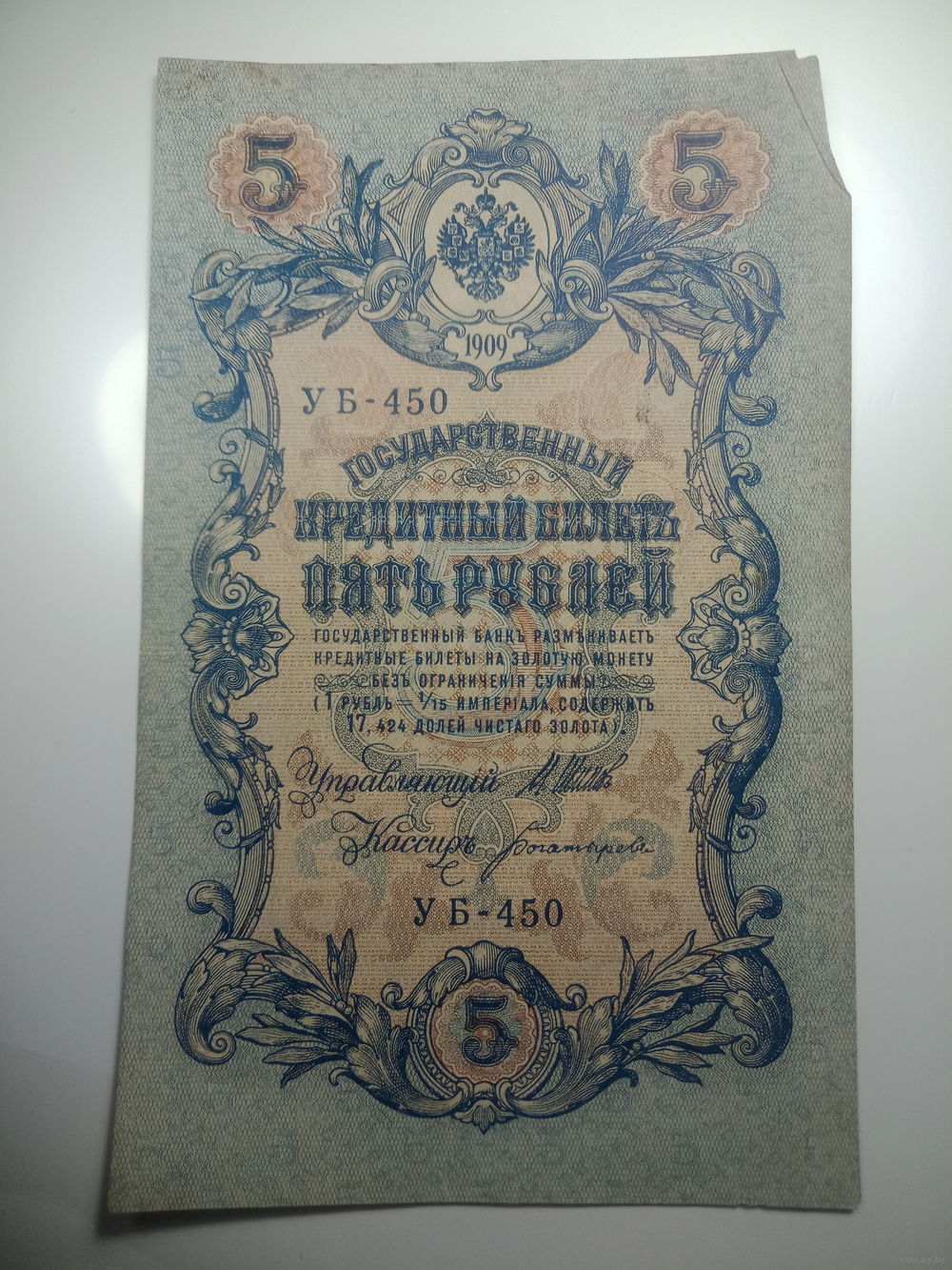 5 рублей 1909 года , Щипов - Богатырев , УБ - 450