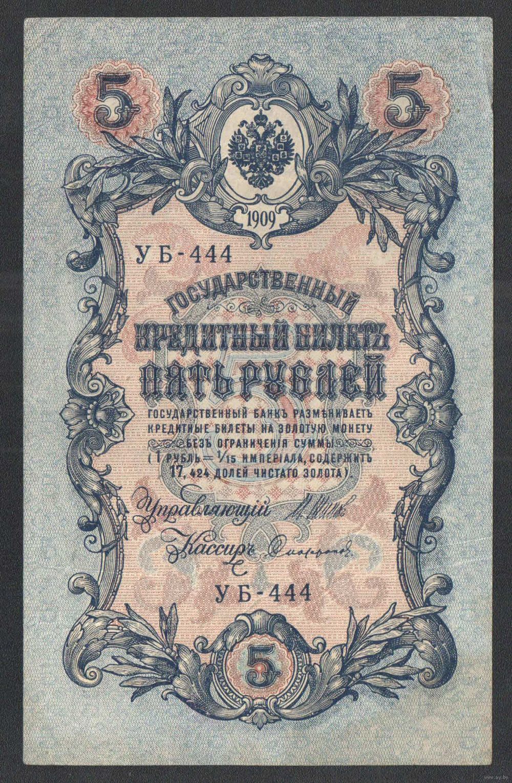 5 рублей 1909 года. Шипов-Сафронов. Правительство РСФСР 1917-1921г.