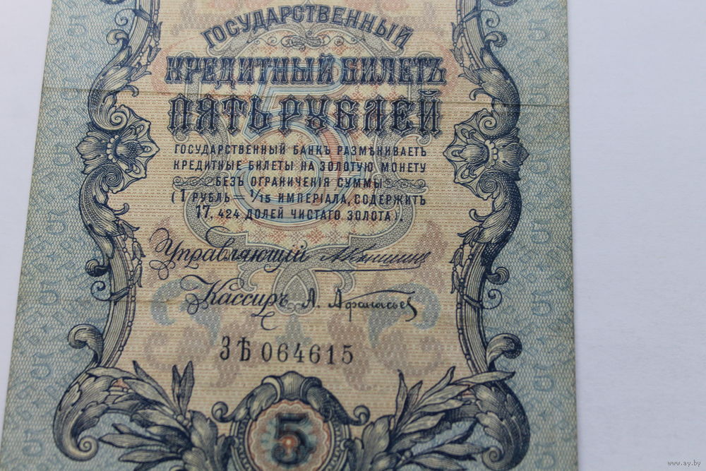 5 рублей 1909. Коншин/Афанасьев.Серия ЗЪ