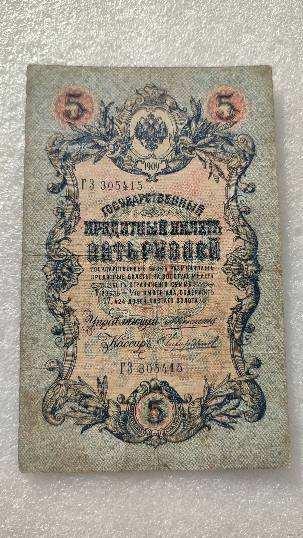 5 рублей 1909 Коншин-Чихиржин