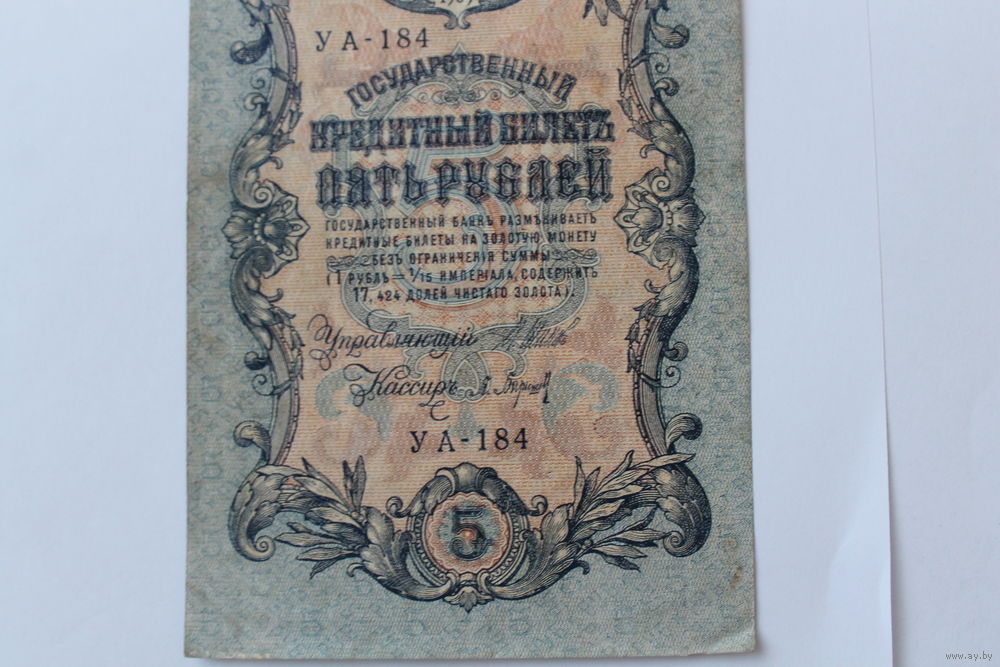 5 рублей 1909. Шипов Барышев. Серия УА-184