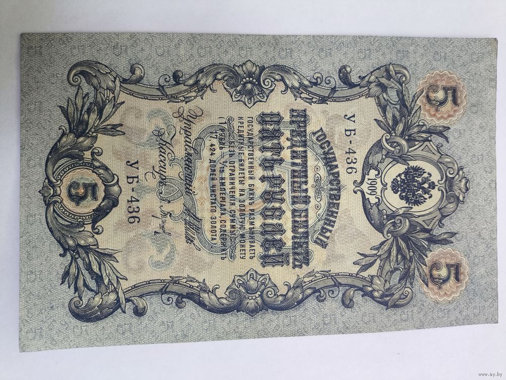 5 рублей 1909. Шипов-Барышев . Серия УБ - 436