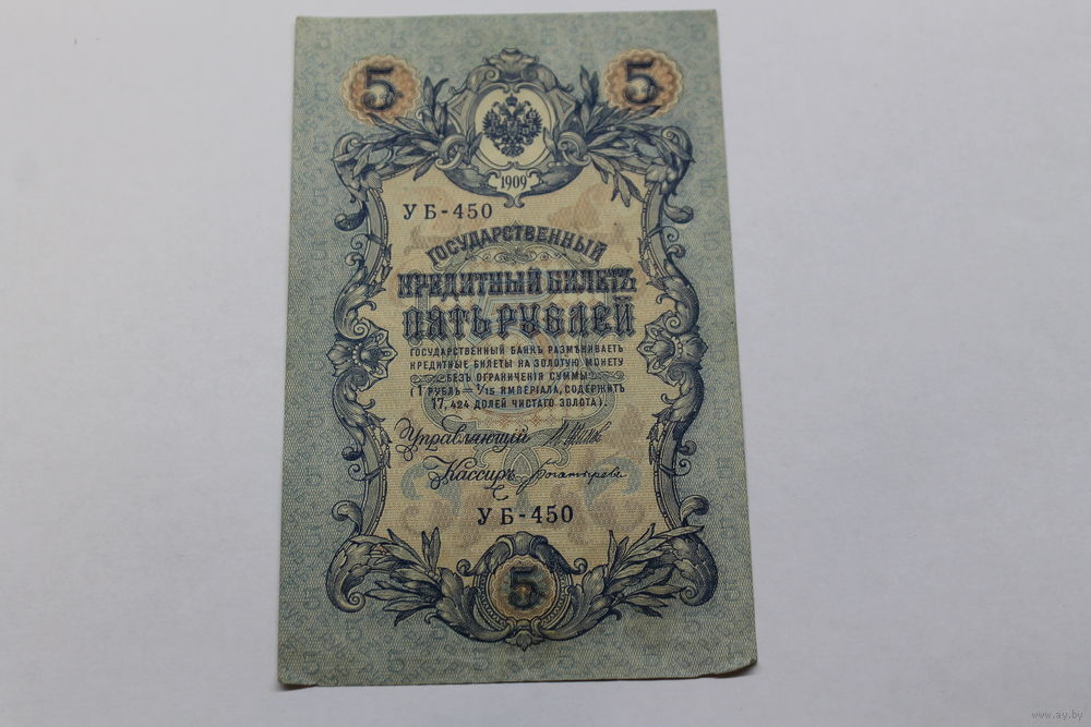 5 рублей 1909. Шипов/Богатырев.Серия УБ 450