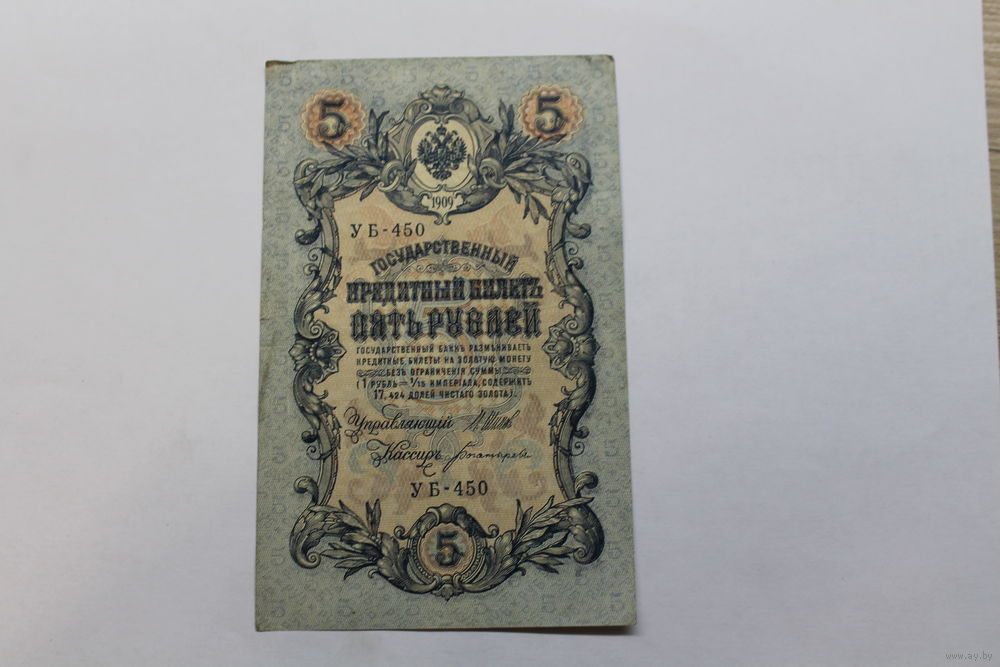 5 рублей 1909. Шипов/Богатырев.Серия УБ 450