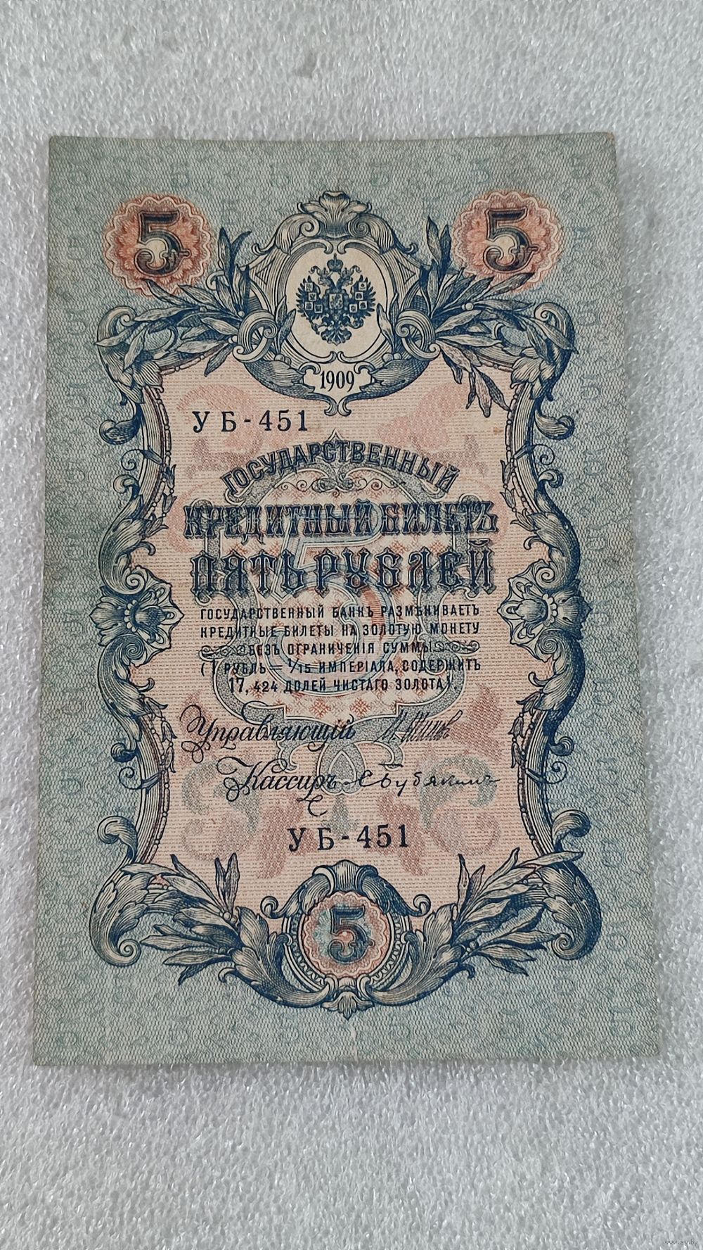 5 рублей 1909 Шипов-Бубякин