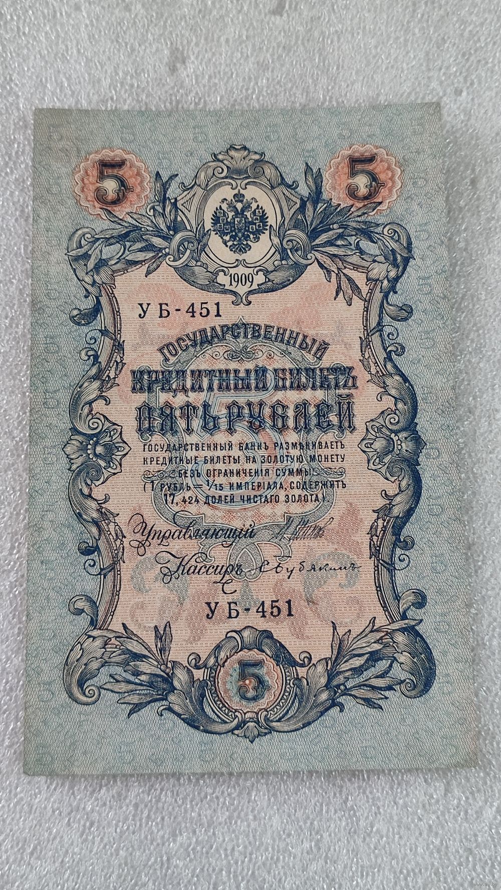5 рублей 1909 Шипов-Бубякин