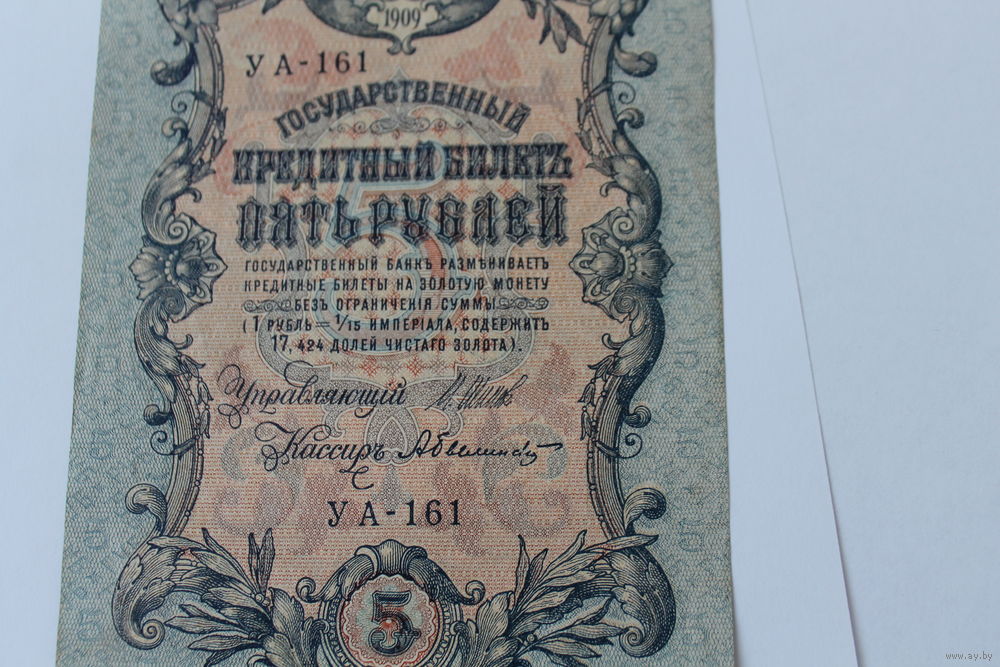 5 рублей 1909. Шипов - Былинский. Серия УА-161.