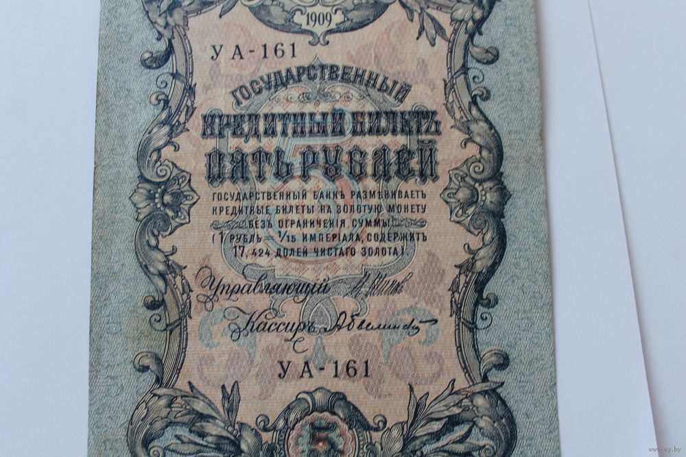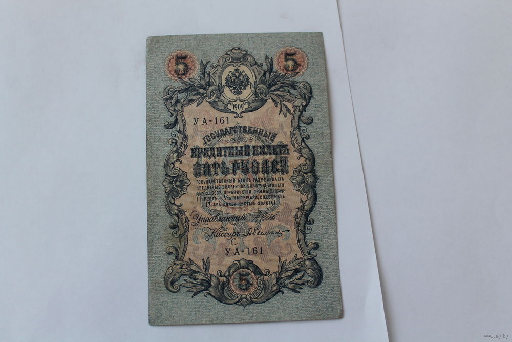 5 рублей 1909. Шипов - Былинский. Серия УА-161.