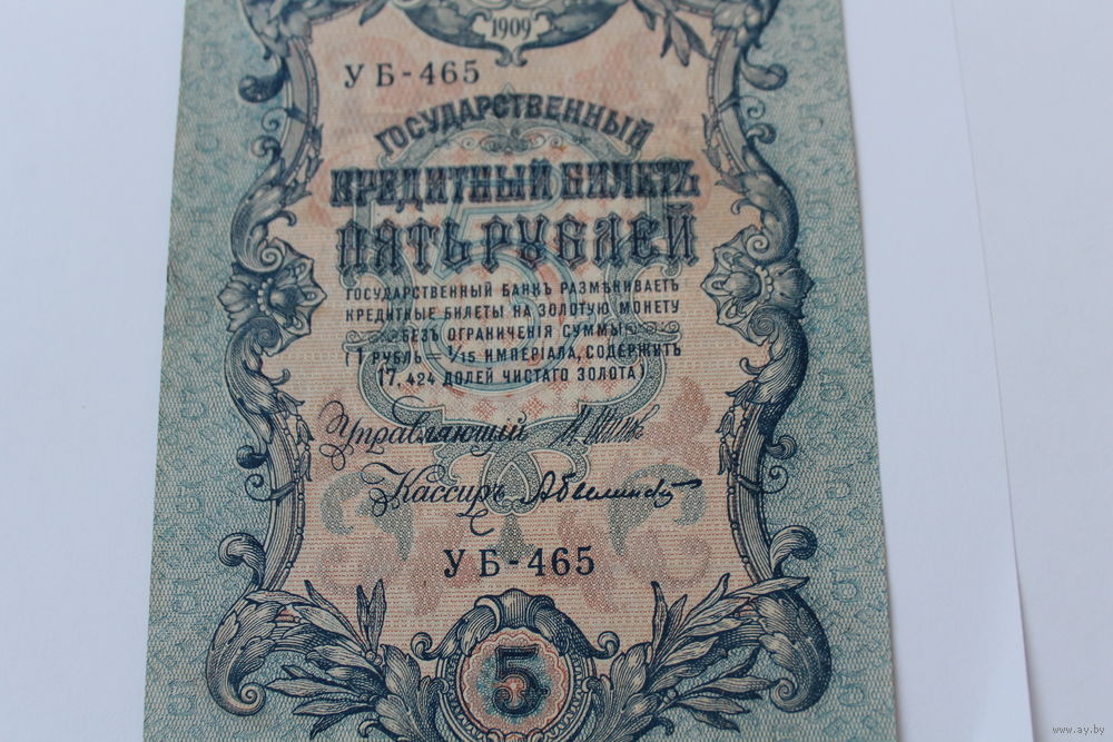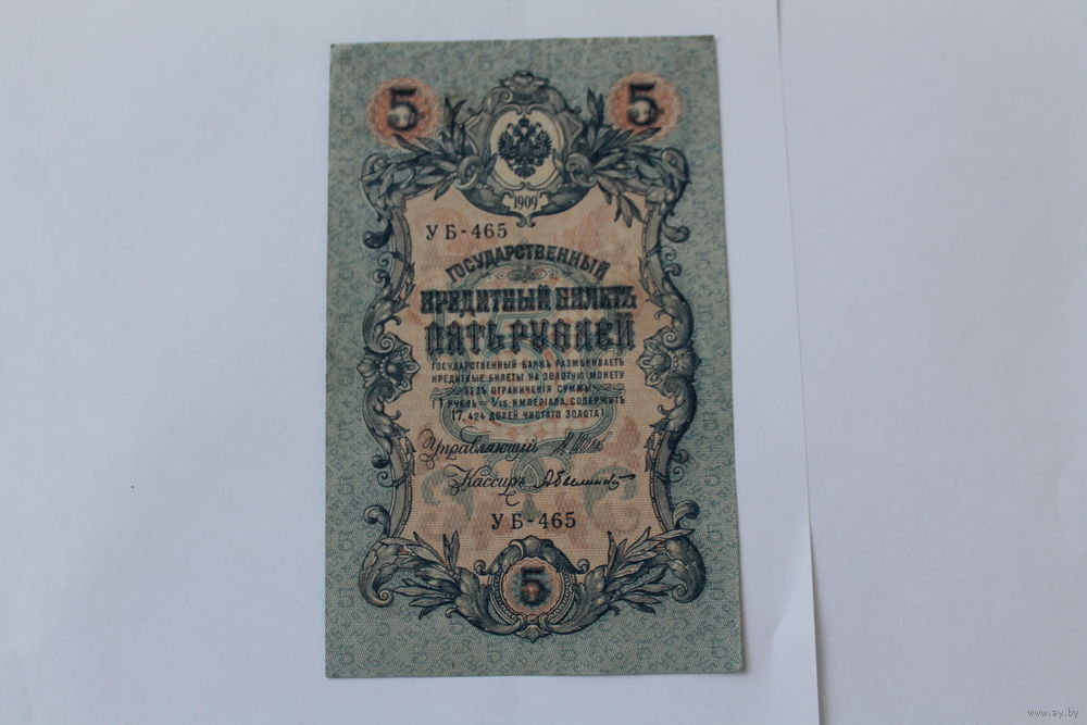 5 рублей 1909. Шипов - Былинский. Серия УБ-465.