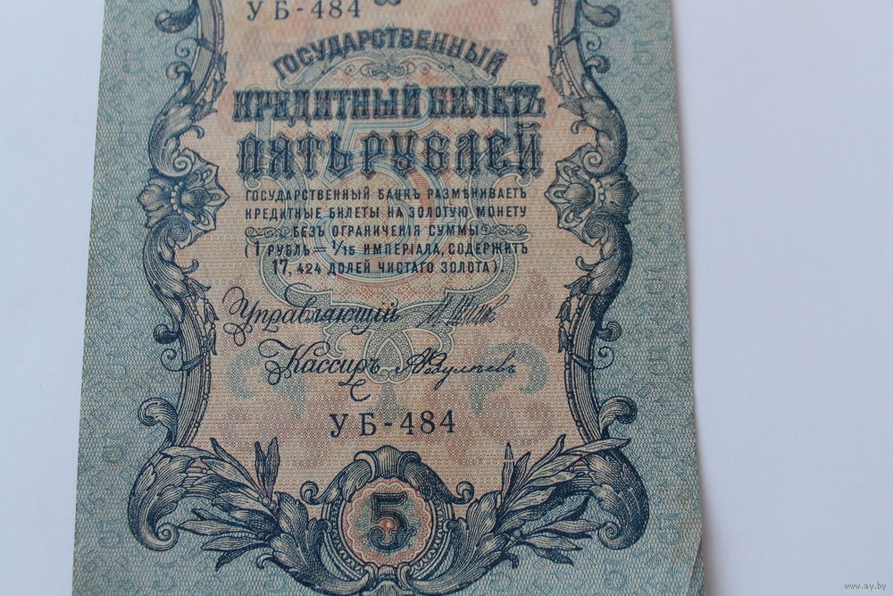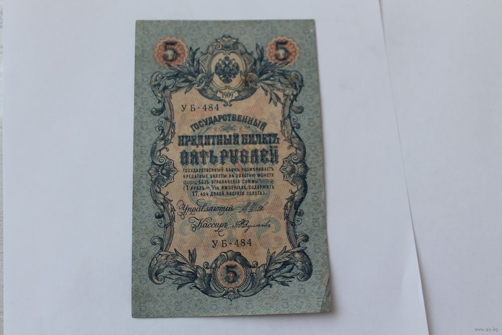 5 рублей 1909. Шипов - Былинский. Серия УБ-484