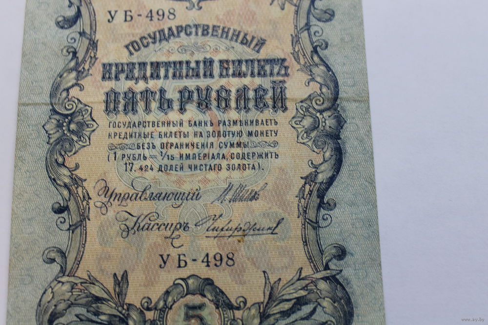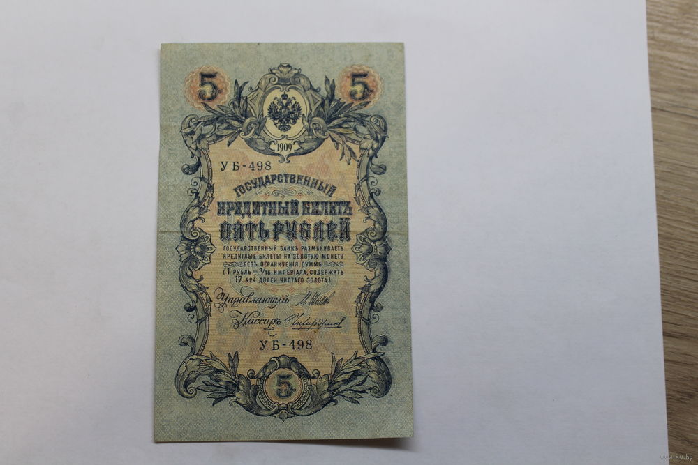 5 рублей 1909. Шипов/Чихиржин.Серия УБ. Возможен обмен на других управляющих/кассиров.