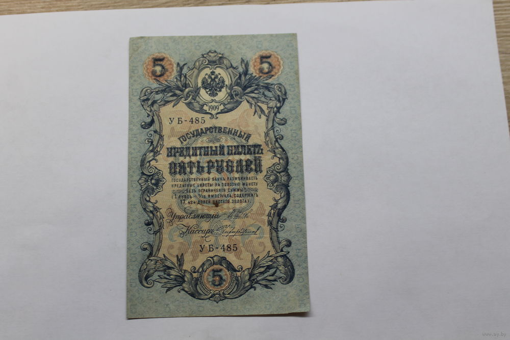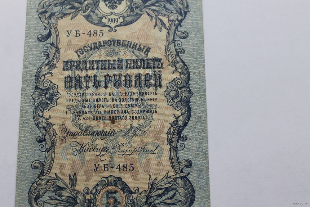 5 рублей 1909. Шипов/Чихиржин.Серия УБ. Возможен обмен на других управляющих/кассиров.