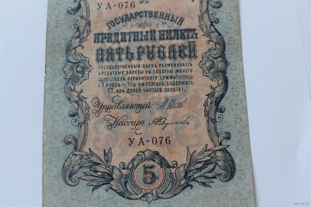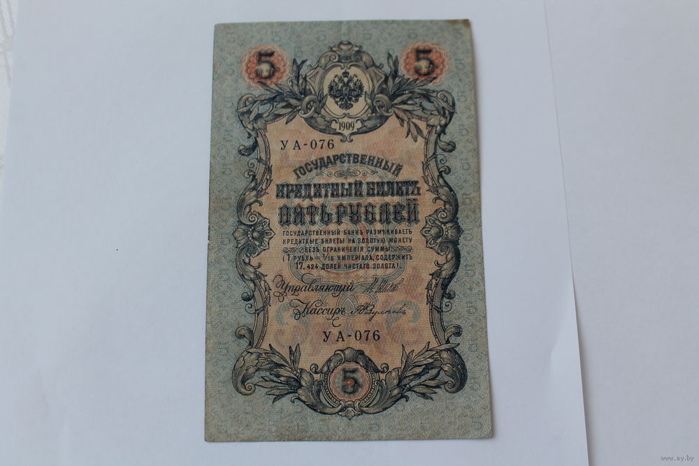 5 рублей 1909. Шипов - Федулеев. Серия УА-076