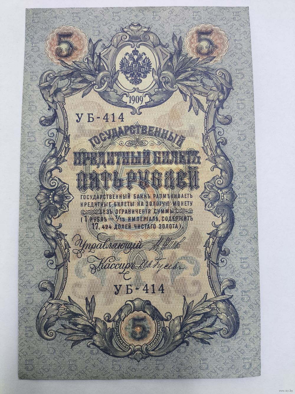 5 рублей 1909. Шипов/Гусев. Серя УБ-414