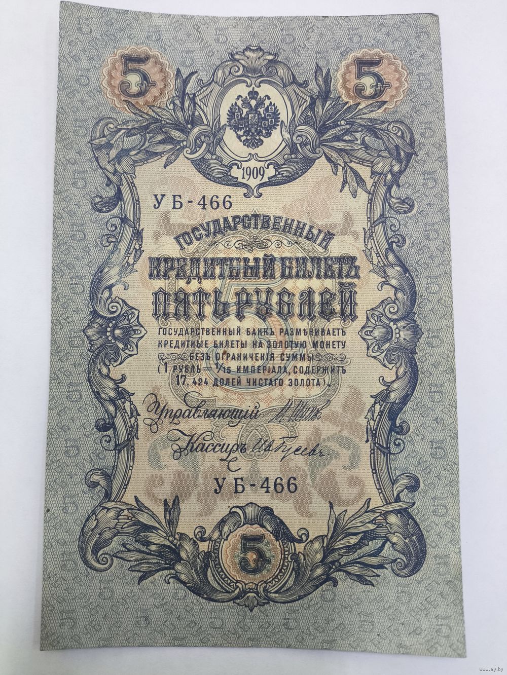 5 рублей 1909. Шипов/Гусев. Серя УБ-466.