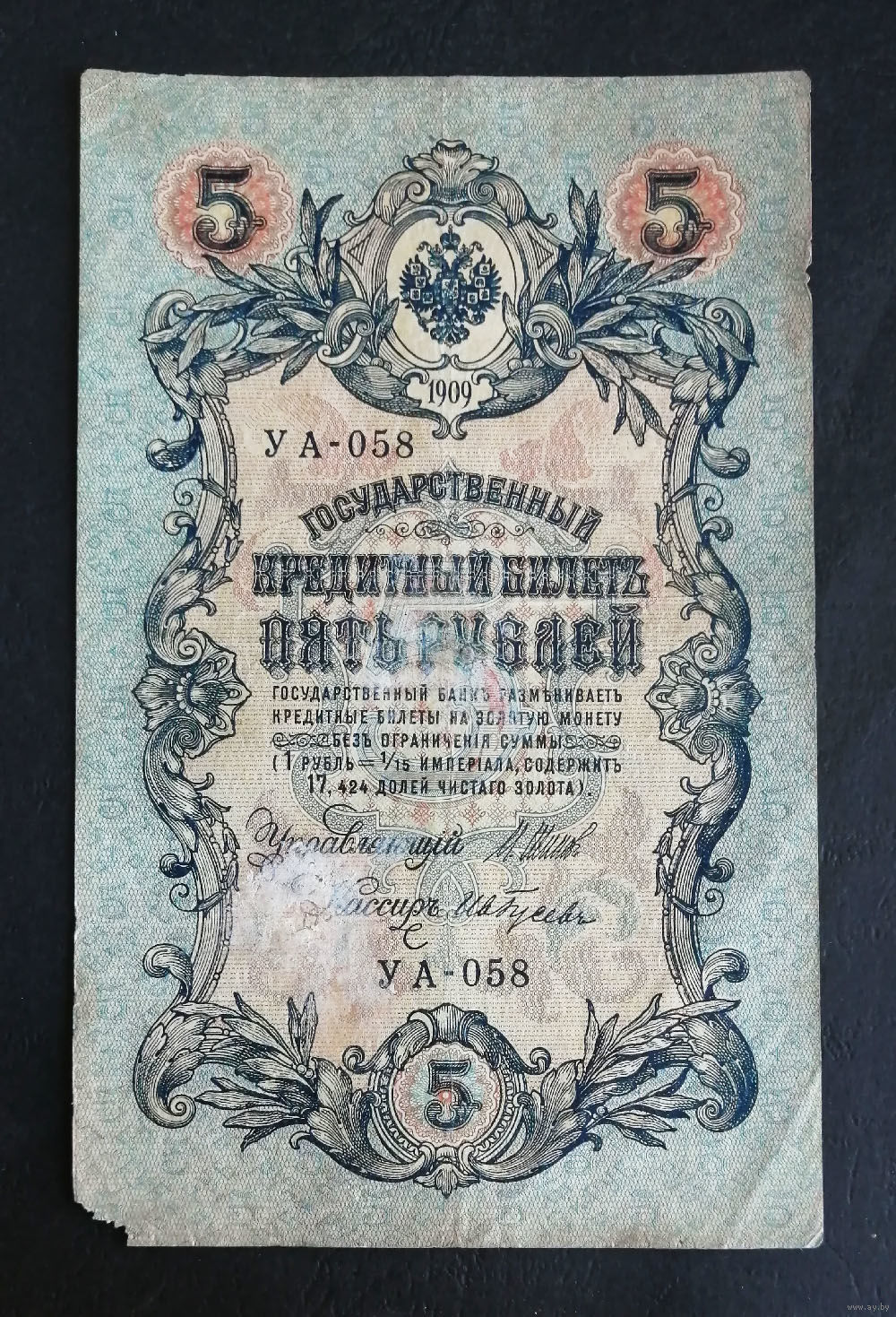 5 рублей 1909 Шипов Ив. Гусев УА 058 #0237