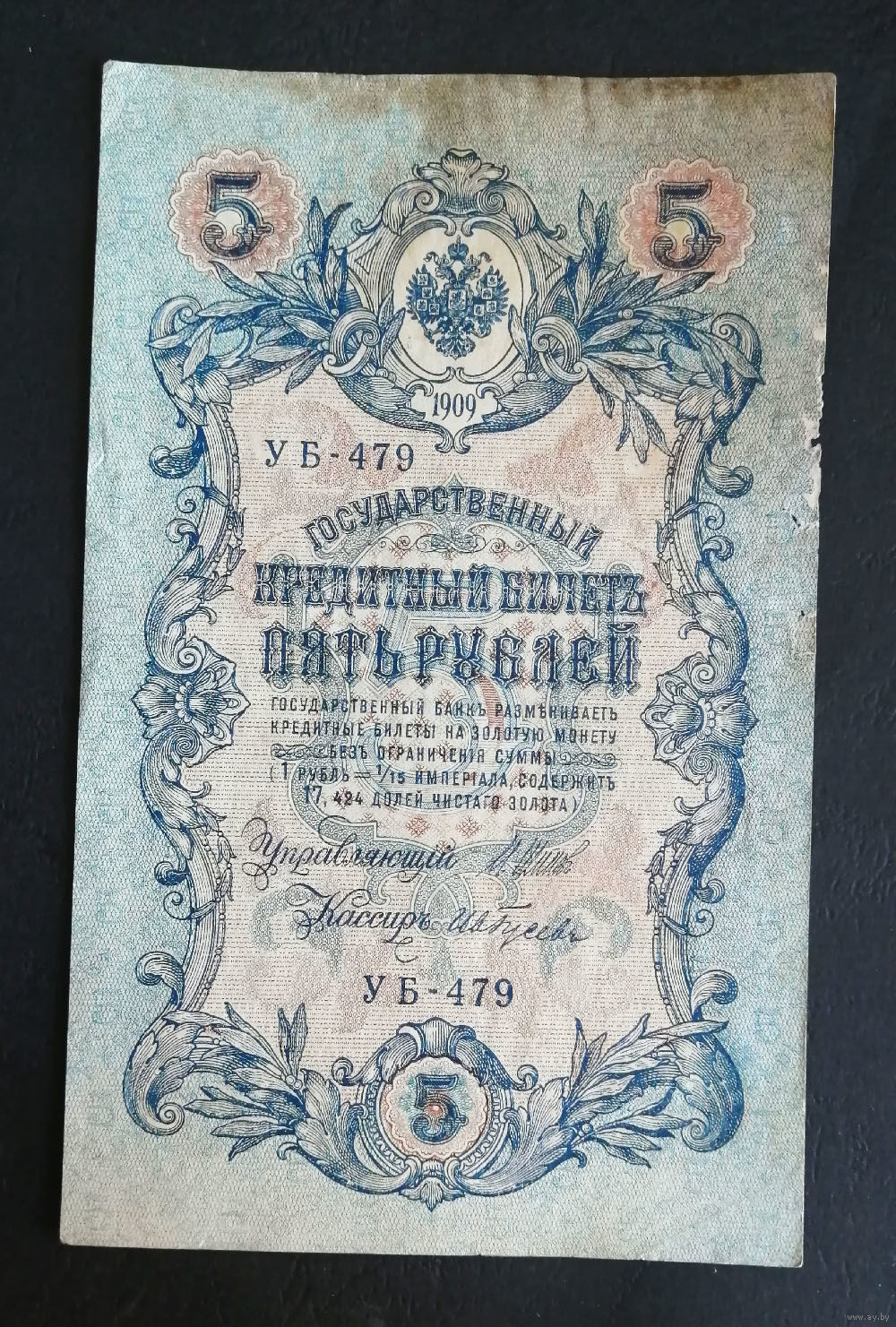 5 рублей 1909 Шипов Ив. Гусев УБ 479 #0177
