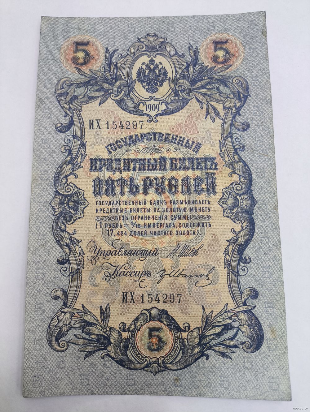 5 рублей 1909. Шипов-Иванов . Серия ИХ 154297