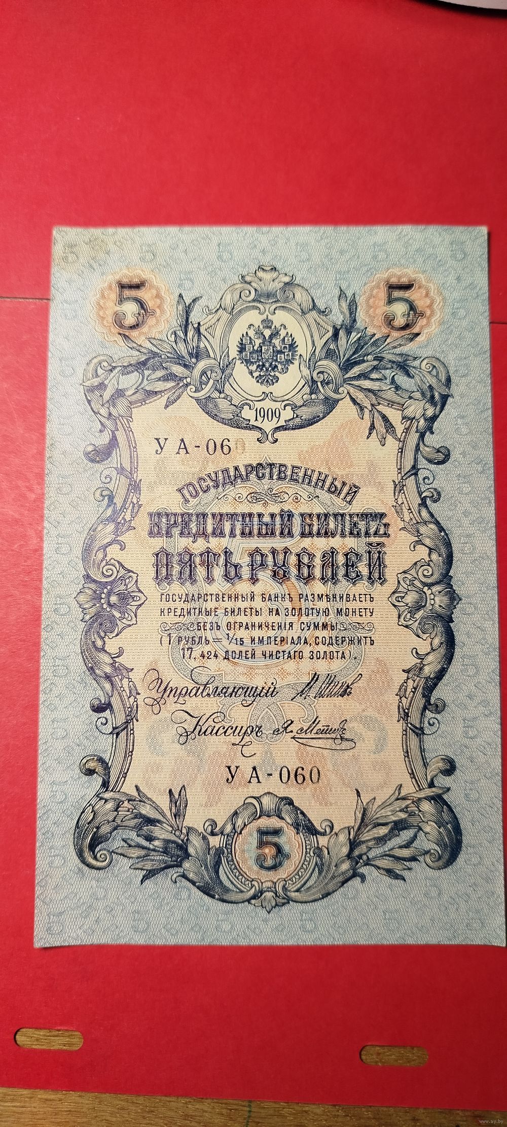 5 рублей 1909. Шипов - Метц. УА-060. С рубля. (09) Почти Нульц.