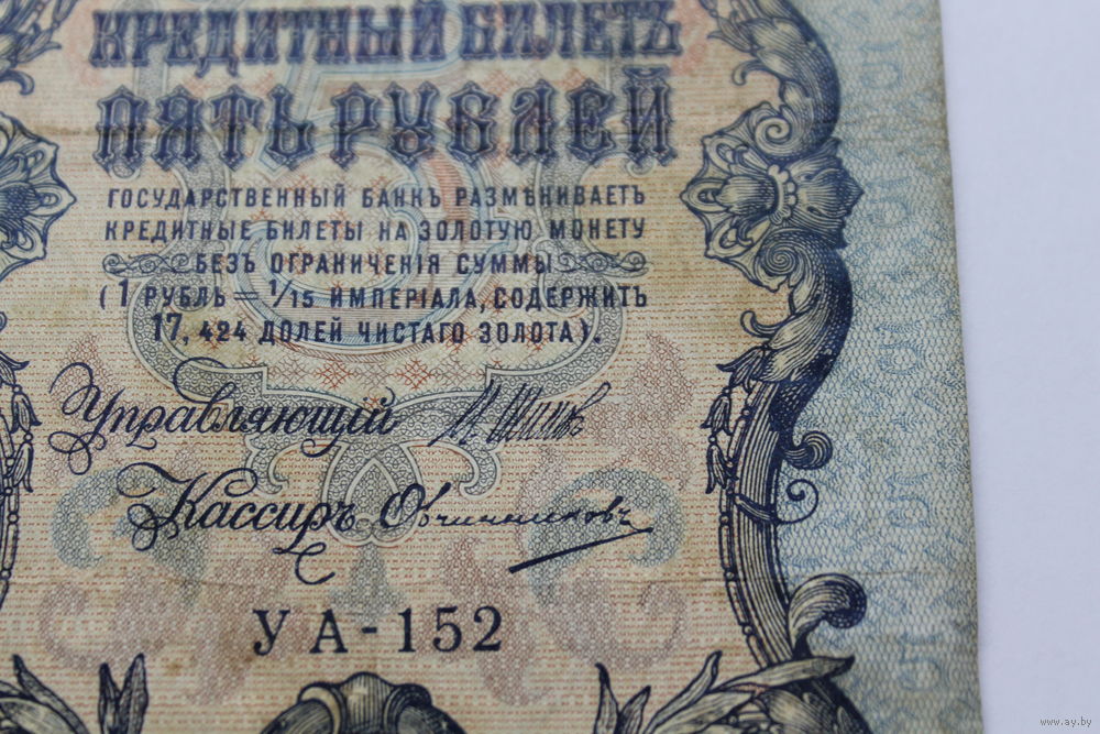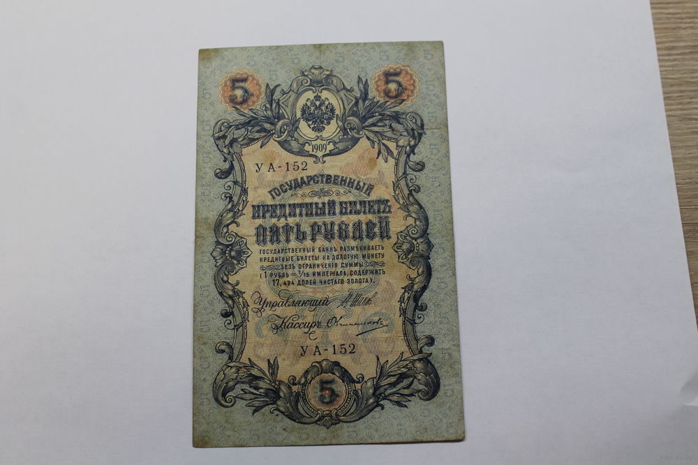 5 рублей 1909. Шипов/Овчинников.Серия УА. Возможен обмен на другие.