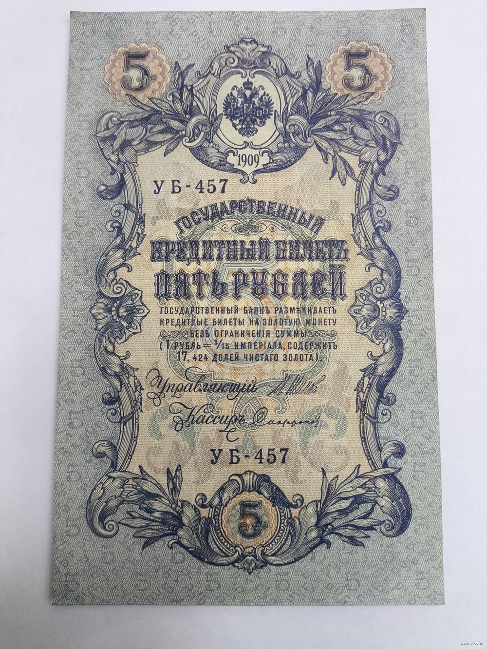 5 рублей 1909. Шипов-Сафронов . Серия УБ