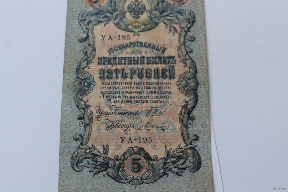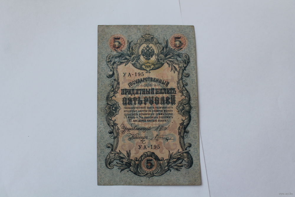 5 рублей 1909. Шипов/Шагин. Серия УА 195