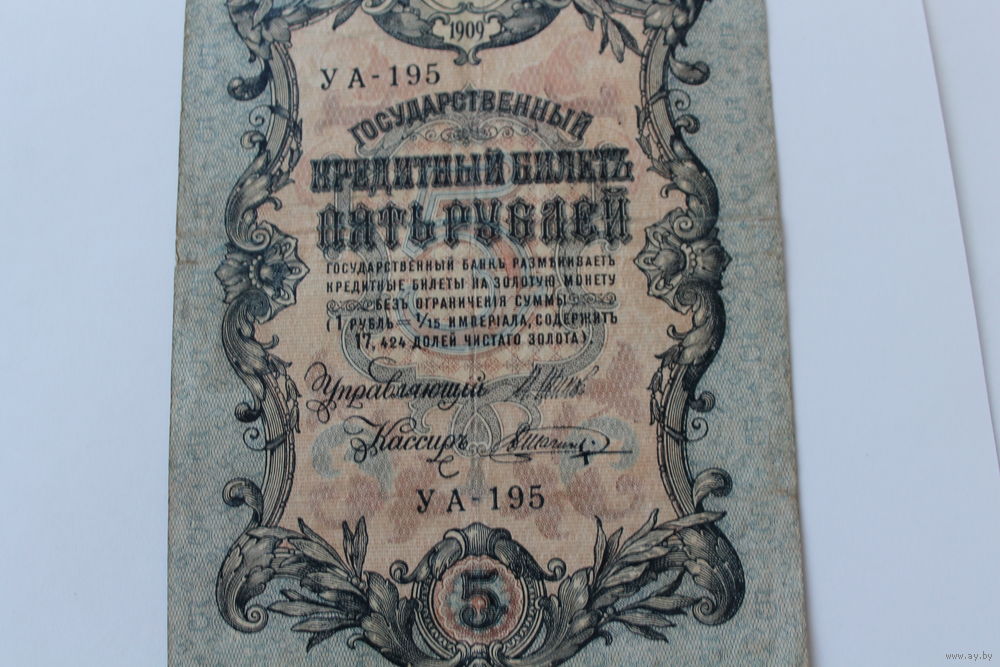 5 рублей 1909. Шипов/Шагин. Серия УА - 195