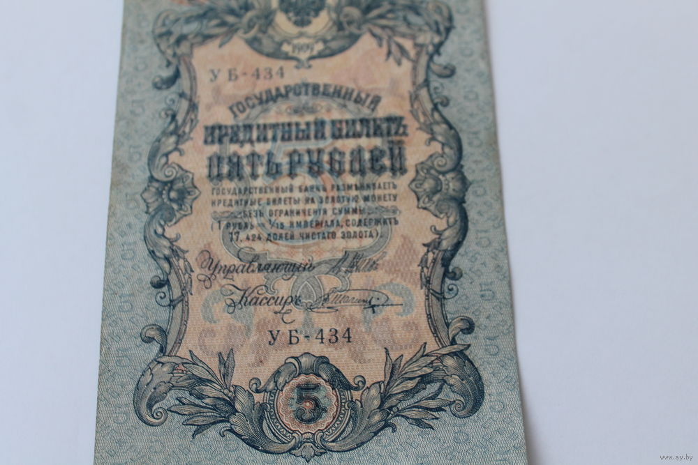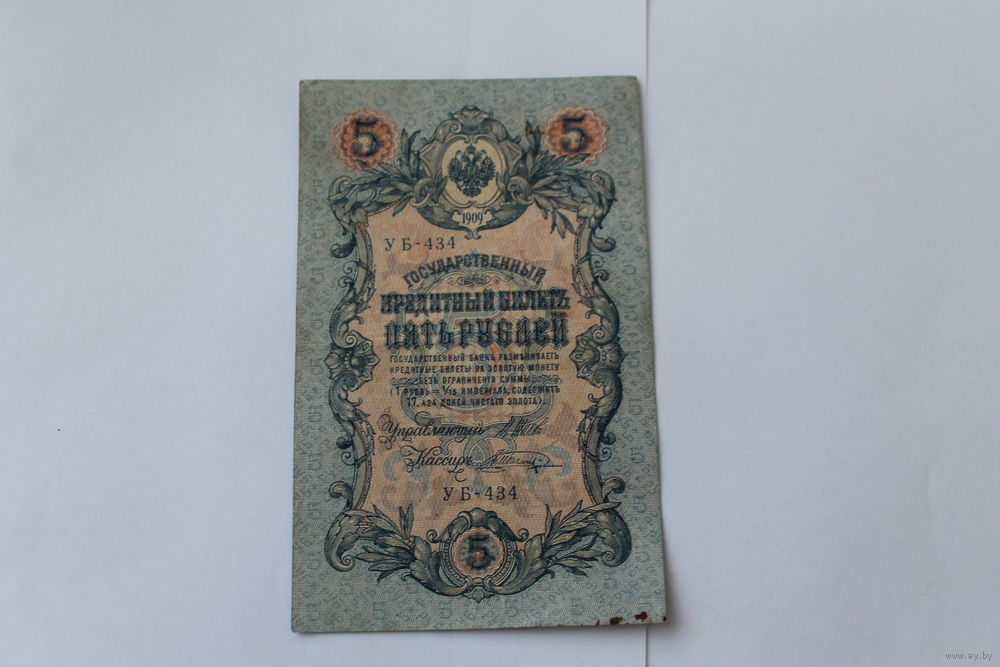 5 рублей 1909. Шипов/Шагин. Серия УБ 434
