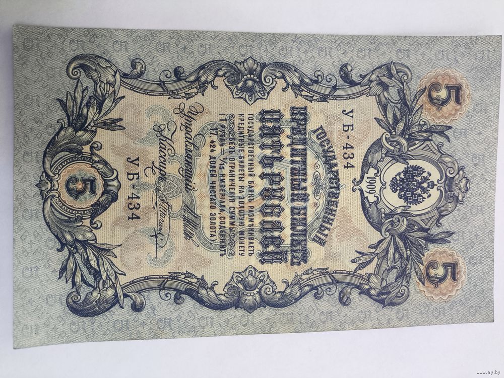5 рублей 1909. Шипов-Шагин. Серия УБ - 434