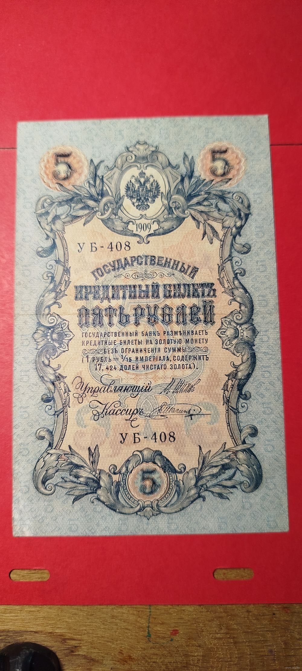 5 рублей 1909. Шипов - Шагин. УБ-408. С рубля. (07) Отличные.